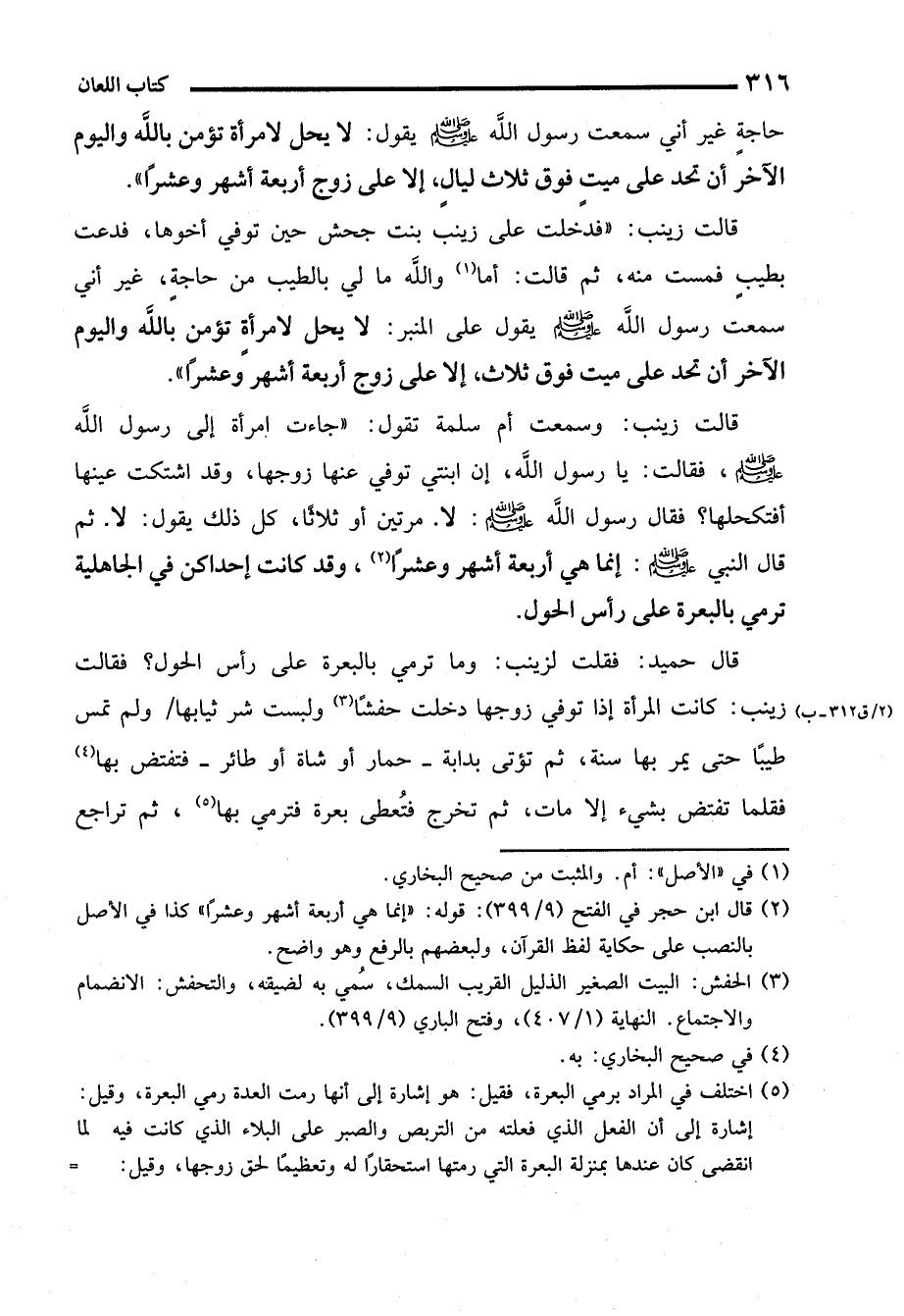 قالت زينب: وسمعت أم سلمة تقول: "جاءت امرأة إلى رسول الله - صلى الله عليه وسلم -، فقالت: يا رسول الله، إن ابنتي توفي عنها زوجها، وقد اشتكت عينها أفتكحلها؟ فقال رسول الله - صلى الله عليه وسلم -: لا. مرتين أو ثلاثًا، كل ذلك يقول: لا. ثم قال النبي - صلى الله عليه وسلم -: إنما هي أربعة أشهر وعشرًا (¬2)، وقد كانت إحداكن في الجاهلية ترمي بالبعرة على رأس الحول.
