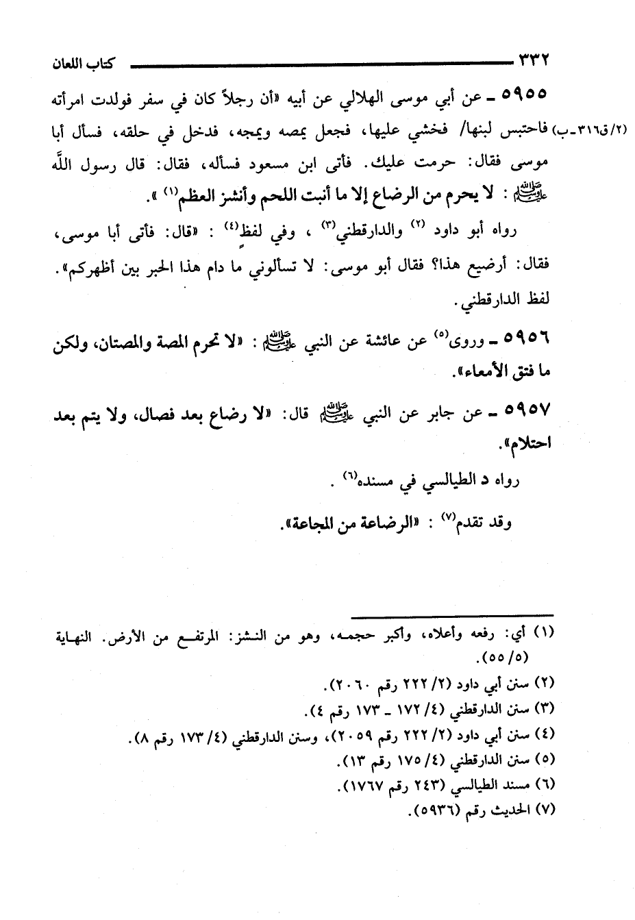 رواه أبو داود (¬2) والدارقطني (¬3)، وفي لفظٍ (¬4): "قال: فأتى أبا موسى، فقال: أرضيع هذا؟ فقال أبو موسى: لا تسألوني ما دام هذا الحبر بين أظهركم". لفظ الدارقطني.