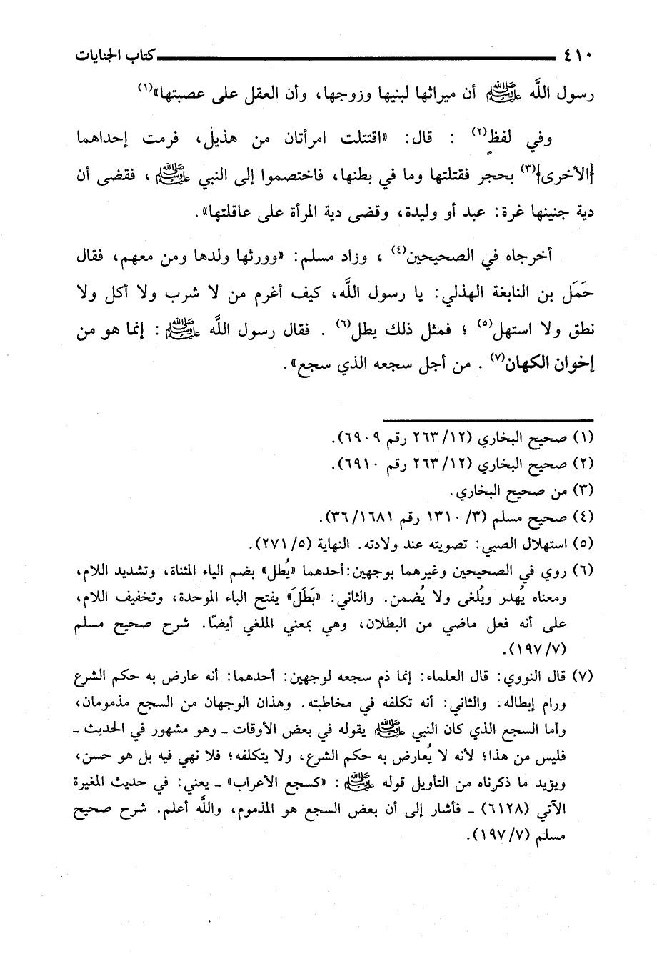 أخرجاه في الصحيحين (¬4)، وزاد مسلم: "وورثها ولدها ومن معهم، فقال حَمَل بن النابغة الهذلي: يا رسول الله، كيف أغرم من لا شرب ولا أكل ولا نطق ولا استهل (¬5)؛ فمثل ذلك يطل (¬6). فقال رسول الله - صلى الله عليه وسلم -: إنما هو من إخوان الكهان (¬7). من أجل سجعه الذي سجع".