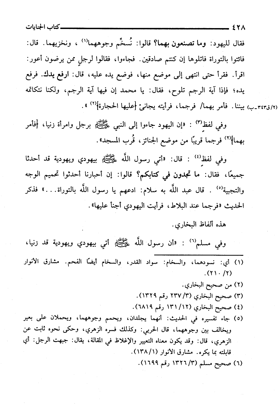 وفي مسلم (¬6): "أن رسول الله - صلى الله عليه وسلم - أتي بيهودي ويهودية قد زنيا،