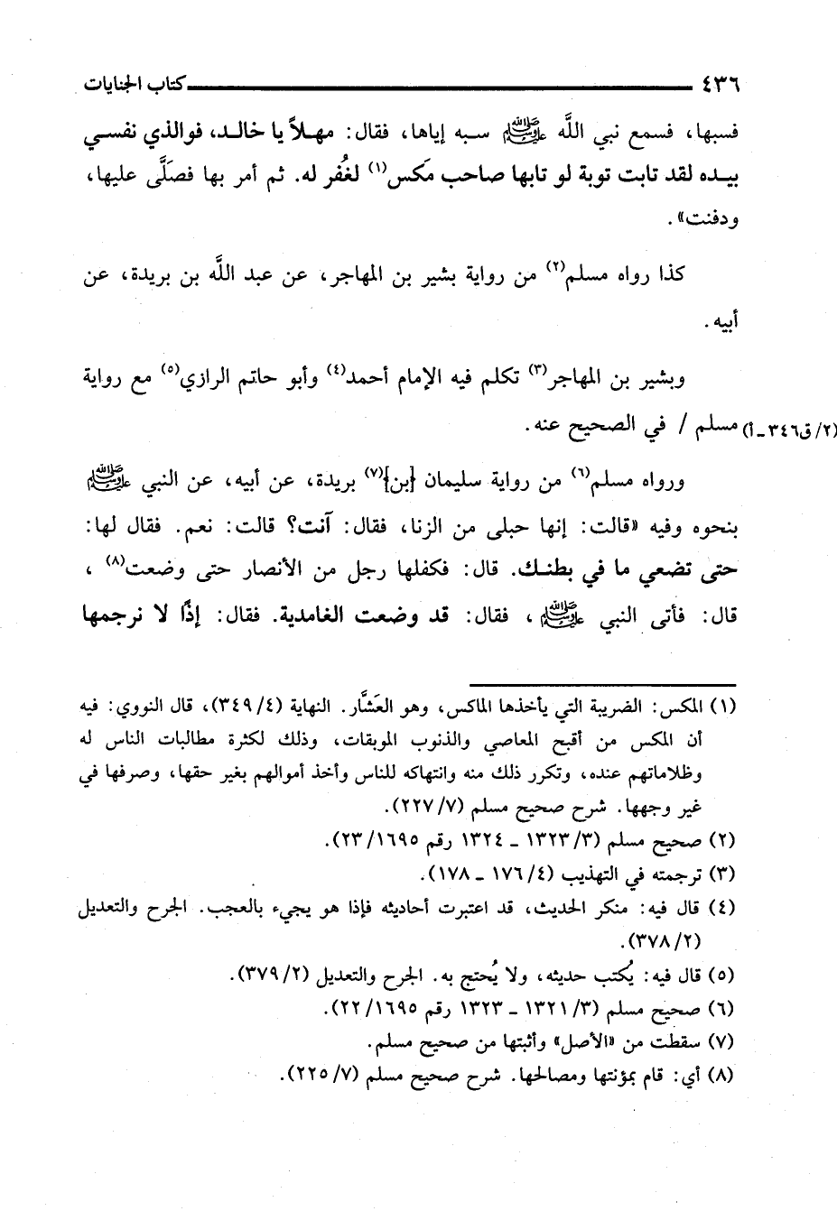 (¬1) المكس: الضريبة التي يأخذها الماكس، وهو العَشّار. النهاية (4/ 349)، قال النووي: فيه أن المكس من أقبح المعاصي والذنوب الموبقات، وذلك لكثرة مطالبات الناس له وظلاماتهم عنده، وتكرر ذلك منه وانتهاكه للناس وأخذ أموالهم بغير حقها، وصرفها في غير وجهها. شرح صحيح مسلم (7/ 227).