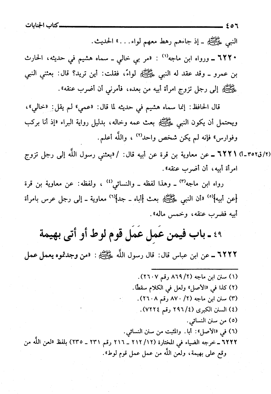 6220 - ورواه ابن ماجه (¬1): "مر بي خالي -سماه هشيم في حديثه، الحارث بن عمرو- وقد عقد له النبي - صلى الله عليه وسلم - لواءً، فقلت: أين تريد؟ قال: بعثني النبي - صلى الله عليه وسلم - إلى رجل تزوج امرأة أبيه من بعده، فأمرني أن أضرب عنقه".