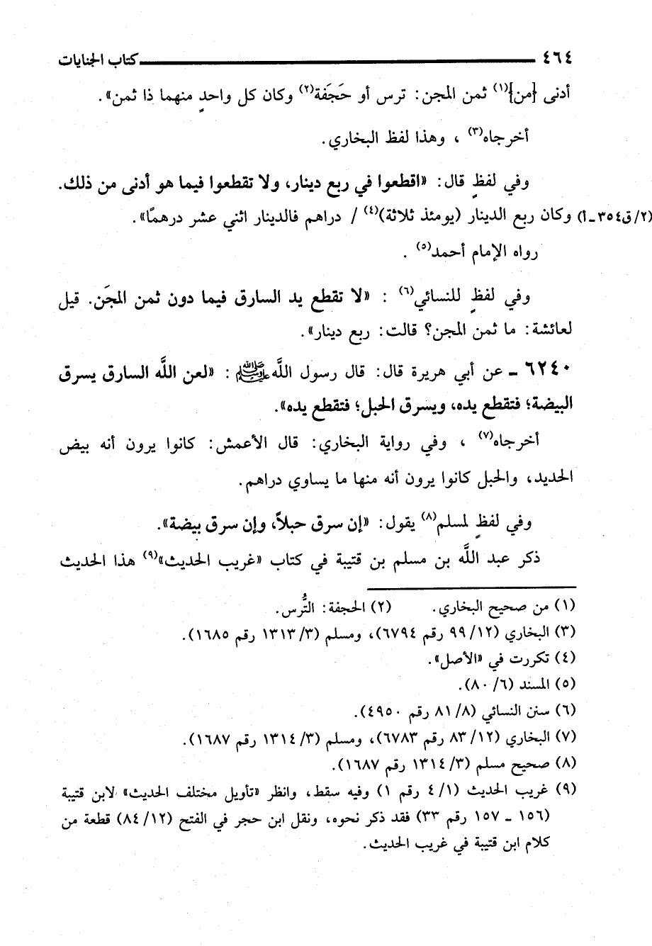 وفي لفظٍ قال: "اقطعوا في ربع دينار، ولا تقطعوا فيما هو أدنى من ذلك. وكان ربع الدينار (يومئذ ثلاثة) (¬4) دراهم فالدينار اثني عشر درهمًا".