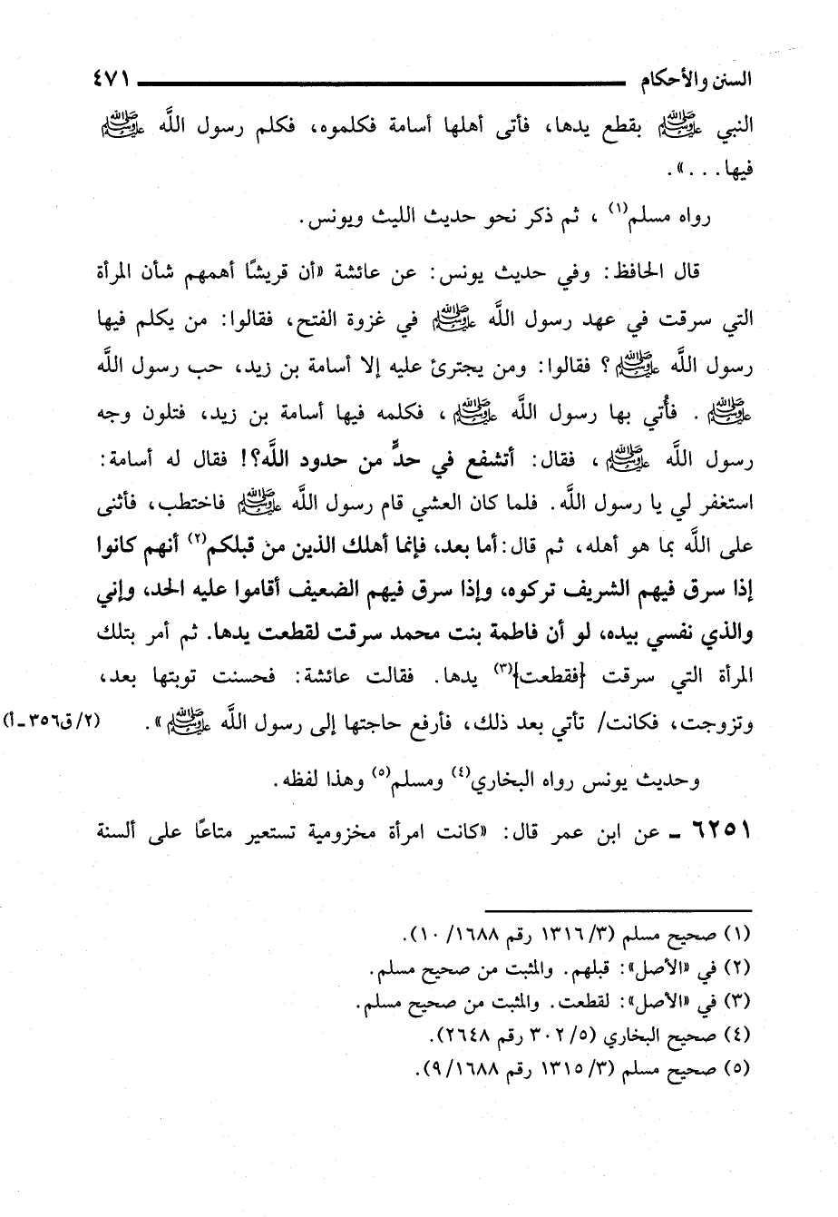 6251 - عن ابن عمر قال: "كانت امرأة مخزومية تستعير متاعًا على ألسنة