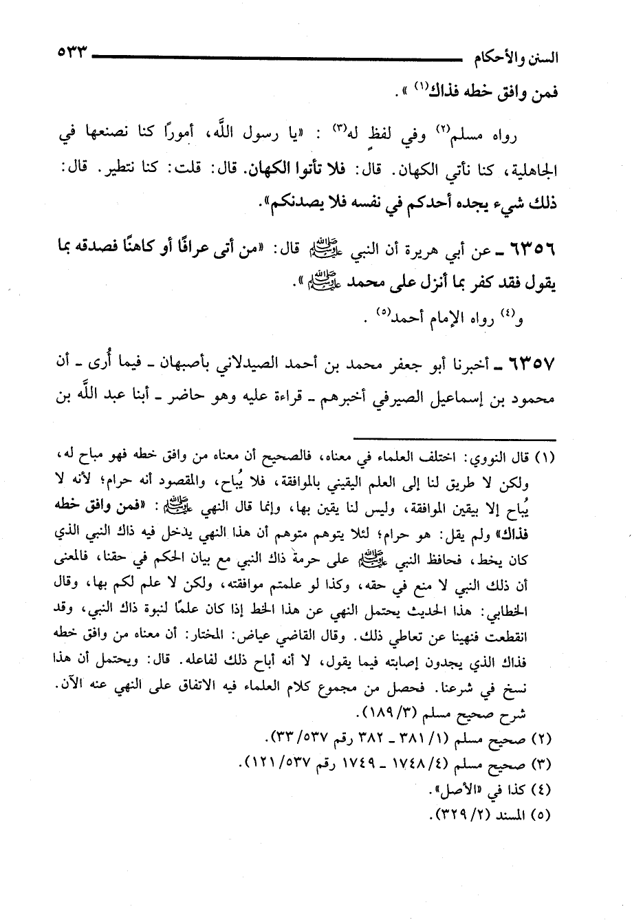 6356 - عن أبي هريرة أن النبي - صلى الله عليه وسلم - قال: "من أتى عرافًا أو كاهنًا فصدقه بما يقول فقد كفر بما أنزل على محمد - صلى الله عليه وسلم -".