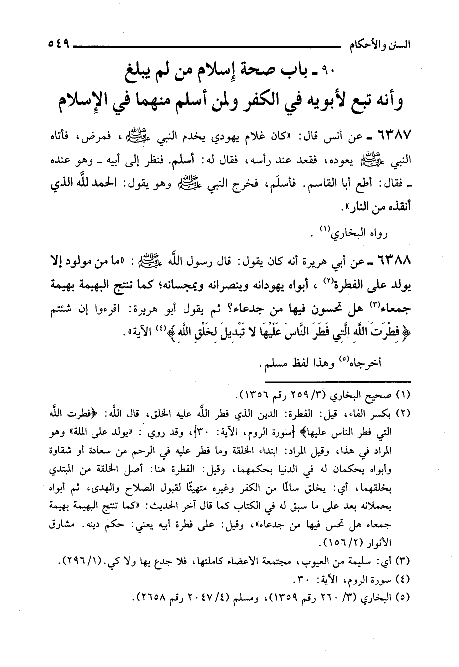 90 - باب صحة إِسلام من لم يبلغ وأنه تبع لأبويه في الكفر ولمن أسلم منهما في الإِسلام