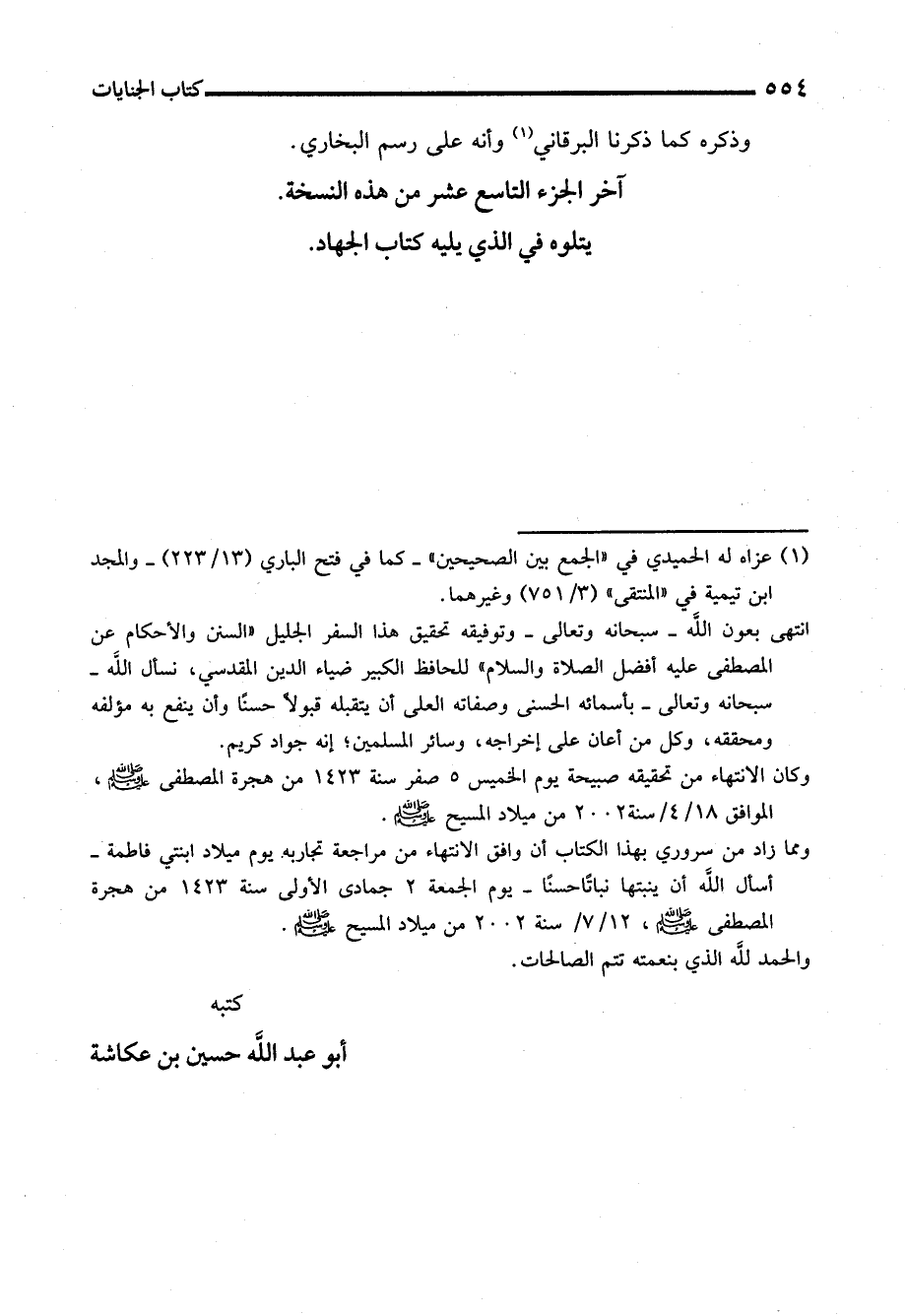 وكان الانتهاء من تحقيقه صبيحة يوم الخميس 5 صفر سنة 1423 من هجرة المصطفى - صلى الله عليه وسلم -، الموافق 18/ 4/ سنة 2002 من ميلاد المسيح - صلى الله عليه وسلم -.
