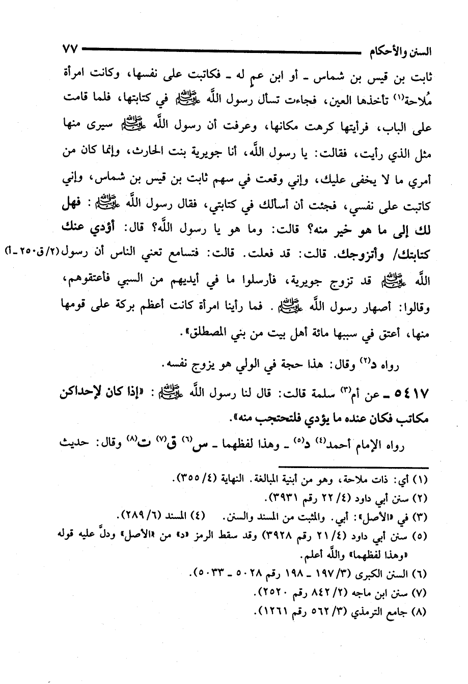 5417 - عن أم (¬3) سلمة قالت: قال لنا رسول الله - صلى الله عليه وسلم -: "إذا كان لإحداكن مكاتب فكان عنده ما يؤدي فلتحتجب منه".