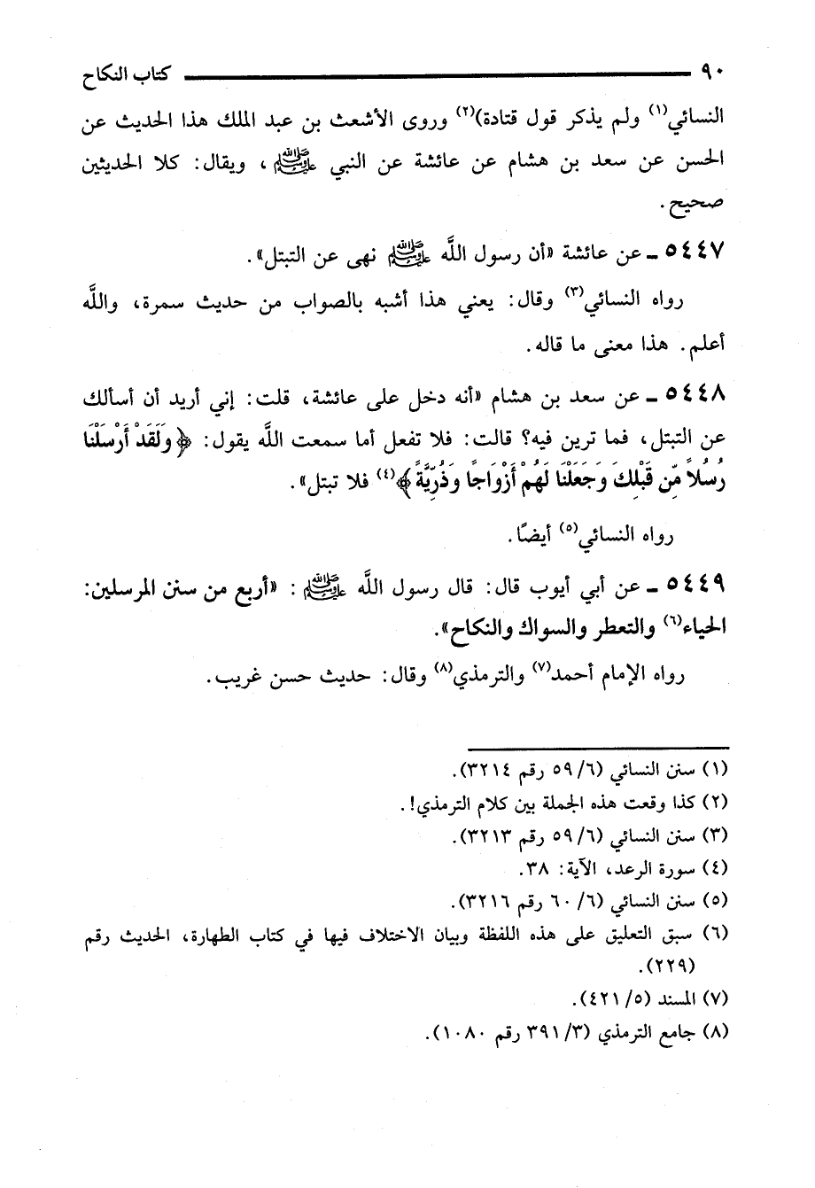 5447 - عن عائشة "أن رسول الله - صلى الله عليه وسلم - نهى عن التبتل".
