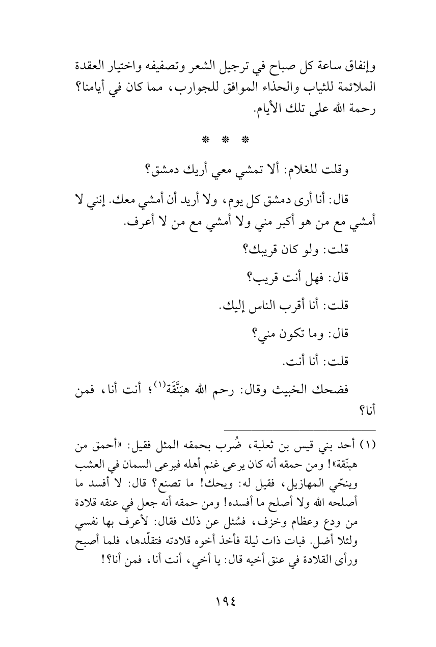 قال: أنا أرى دمشق كل يوم، ولا أريد أن أمشي معك. إنني لا أمشي مع من هو أكبر مني ولا أمشي مع من لا أعرف.