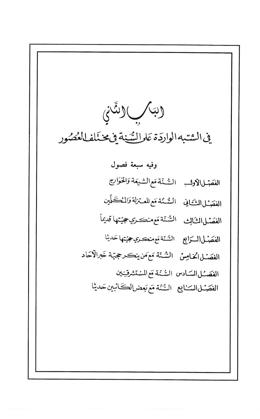 البَابُ الثَّانِي: فِي الشُّبَهِ الوَارِدَةِ عَلَى السُنَّةِ فِي مُخْتَلَفِ العُصُورِ: