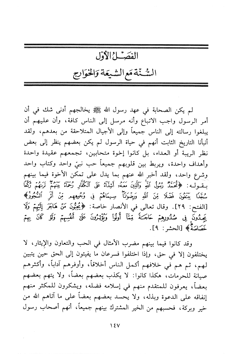 الفَصْلُ الأَوَّلُ: السُنَّةُ مَعَ الشِّيعَةِ وَالخَوَارِجِ: