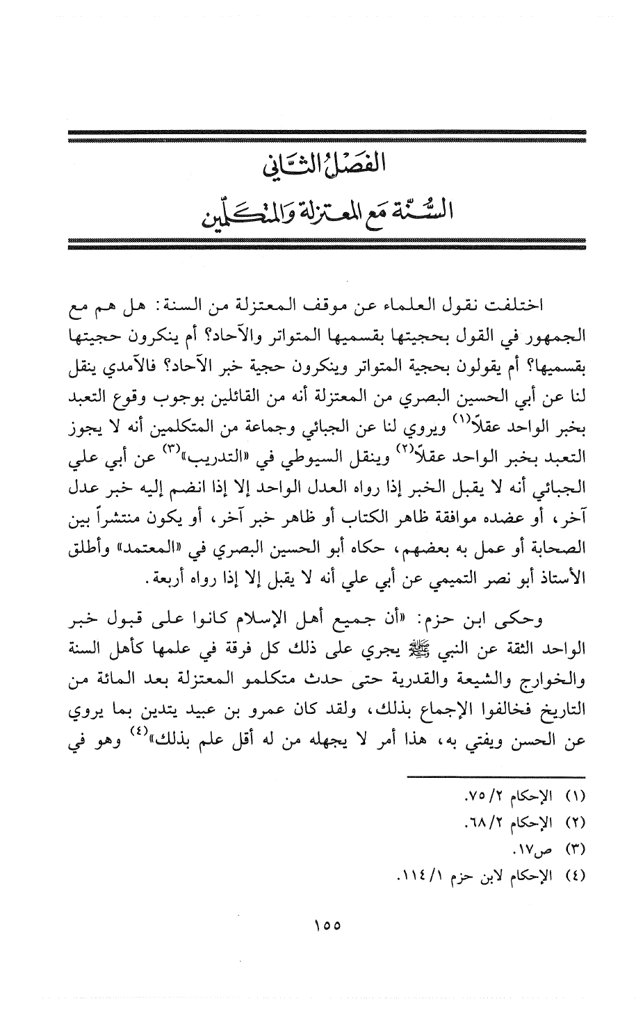 الفَصْلُ الثَّانِي: السُنَّةُ مَعَ المُعْتَزِلَةِ وَالمُتُكُلِّمِينَ: