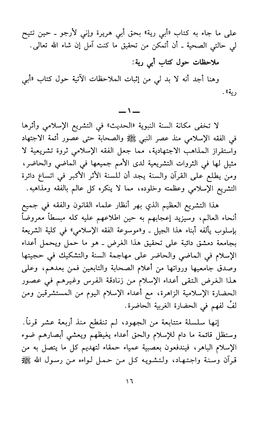على ما جاء به كتاب «أَبِي رَيَّةَ» بحق أبي هريرة وإني لأرجو - حين تتيح لي حالتي الصحية - أن أتمكن من تحقيق ما كنت آمل إن شاء الله تعالى.