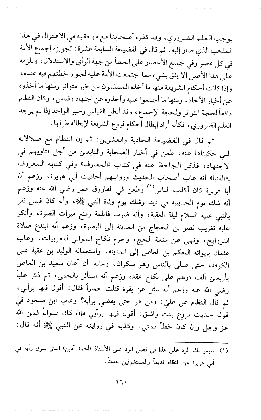 (¬1) سَيَمُرُّ بِكَ الرَدُّ عَلَى هَذَا فِي فَصْلِ الرَدِّ عَلَى الأُسْتَاذِ «أَحْمَد أَمِينْ» الذِي سَرَقَ رَأْيَهُ فِي أَبِي هُرَيْرَةَ عَنِ النَظَّامِ قَدِيمًا وَالمُسْتَشْرِقِينَ حَدِيثًا.