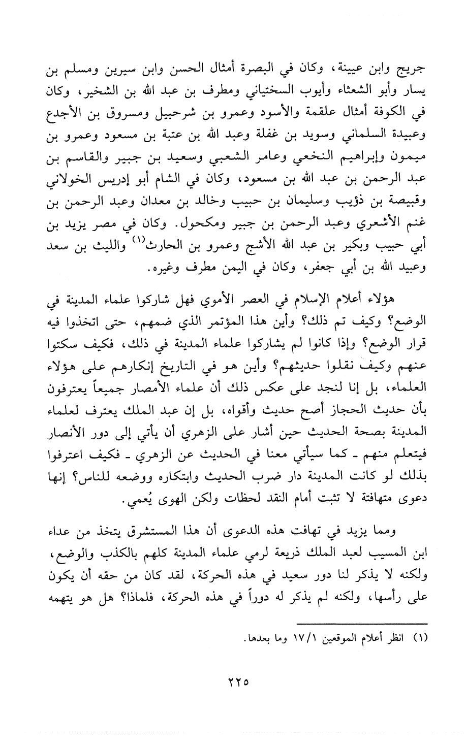 هؤلاء أعلام الإسلام في العصر الأموي فهل شاركوا علماء المدينة في الوضع؟ وكيف تَمَّ ذلك؟ وأين هذا المؤتمر الذي ضَمَّهُمْ، حَتَّى اتَّخَذُوا فيه قرارالوضع؟ وإذا كانوا لم يشاركوا علماء المدينة في ذلك، فكيف سكتوا عنهم وكيف نقلوا حديثهم؟ وأين هو في التاريخ إنكارهم على هؤلاء العلماء. بل إنا لنجد على عكس ذلك أنَّ علماء الأمصار جميعاً يعترفون بأنَّ حديث الحجاز أصح حديث وأقواه، بل إنَّ عبد الملك يعترف لعلماء المدينة بِصِحَّةِ الحديث حين أشار على الزُّهْرِي أنْ يأتي إلى دُورِ الأنصار (*) فيتعلم منهم - كما سيأتي معنا في الحديث عن الزُّهْرِي - فكيف اعترفوا بذلك لو كانت المدينة دار ضرب الحديث وابتكاره ووضعه للناس؟ إنها دعوى متهافتة لا تثبت أمام النقد لحظات ولكن الهَوَى يُعْمِي.