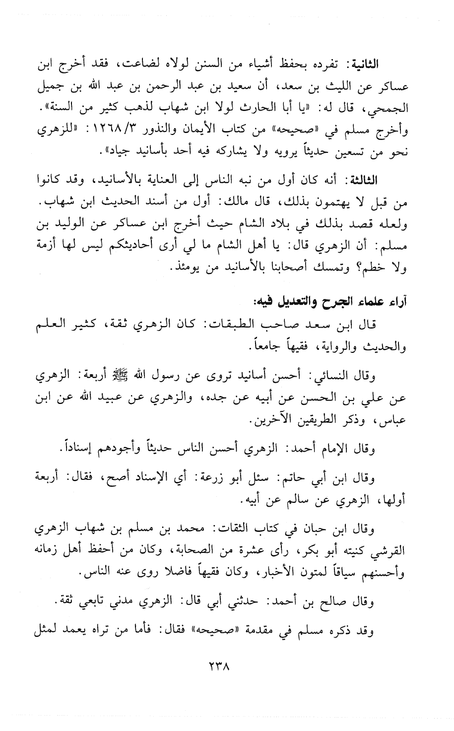 وقال الإمام أحمد: «الزُّهْرِيُّ أَحْسَنُ النَّاسِ حَدِيثًا وَأَجْوَدُهُمْ إِسْنَادًا».