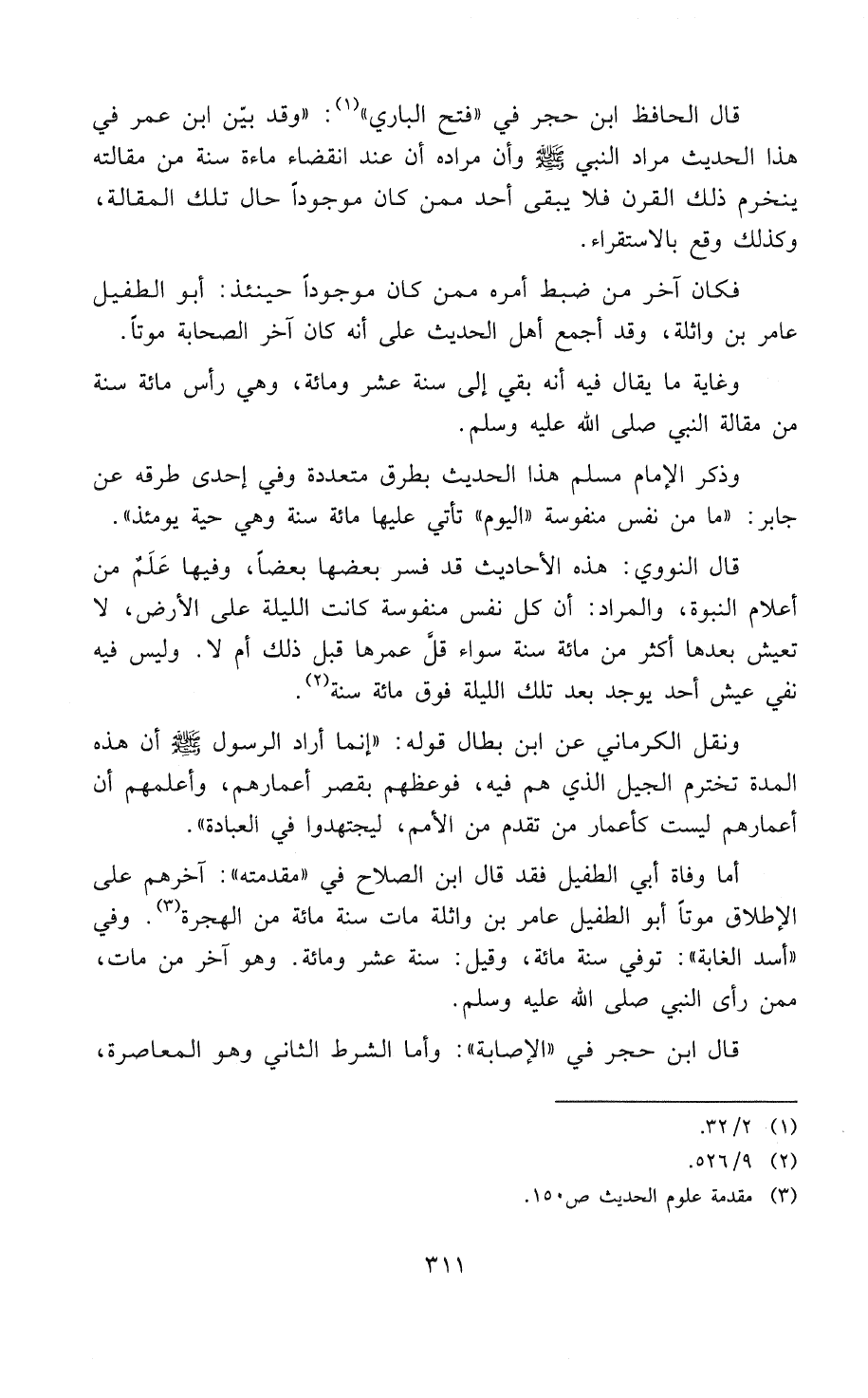 أما وفاة أبي الطفيل فقد قال ابن الصلاح في " مقدمته ": «آخِرُهُمْ عَلَى الإِطْلاَقِ مَوْتًا أَبُو الطُّفَيْلِ عَامِرُ بْنُ وَاثِلَةَ، مَاتَ سَنَةَ مِائَةٍ مِنَ الْهِجْرَةِ» (¬3). وفي " أُسد الغابة ": «تُوُفِّيَ سَنَةَ مِائَةٍ، وَقِيلَ: سَنَةَ عَشْرٍ وَمِائَةٍ. وَهُوَ آخِرُ مَنْ مَاتَ، مِمَّنْ رَأَى النَّبِيَّ - صَلََّى اللهُ عَلَيْهِ وَسَلَّمَ -».