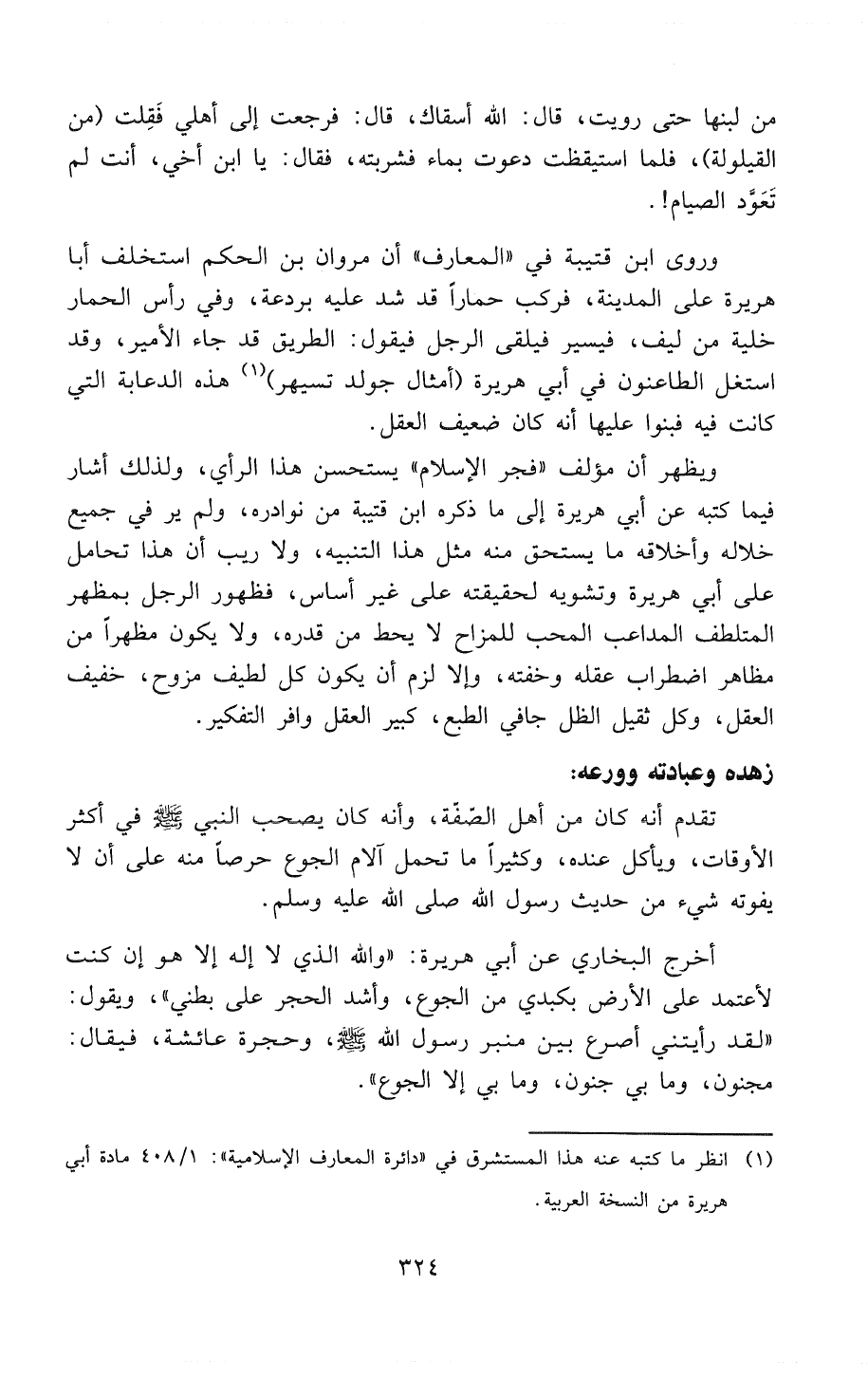 (¬1) انظر ما كتبه عنه هذا المستشرق في " دائرة المعارف الإسلامية ": 1/ 408 مادة (أبي هريرة) من النسخة العربية.