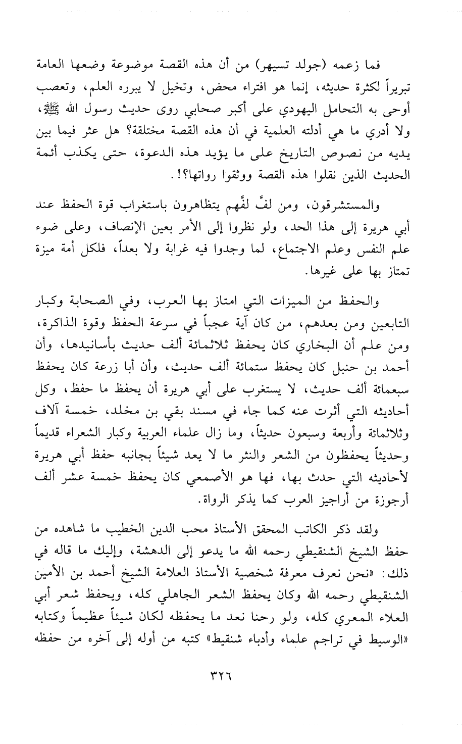 والمُسْتَشْرِقُونَ، ومن لَفَّ لَفَّهُمْ يتظاهرون باستغراب قوة الحفظ عند أبي هريرة إلى هذا الحد، ولو نظروا إلى الأمر بعين الإنصاف، وعلى ضوء علم النفس وعلم الاجتماع، لما وجدوا فيه غرابة ولا بُعْدًا، فلكل أُمَّةٍ ميزة تمتاز بها على غيرها.