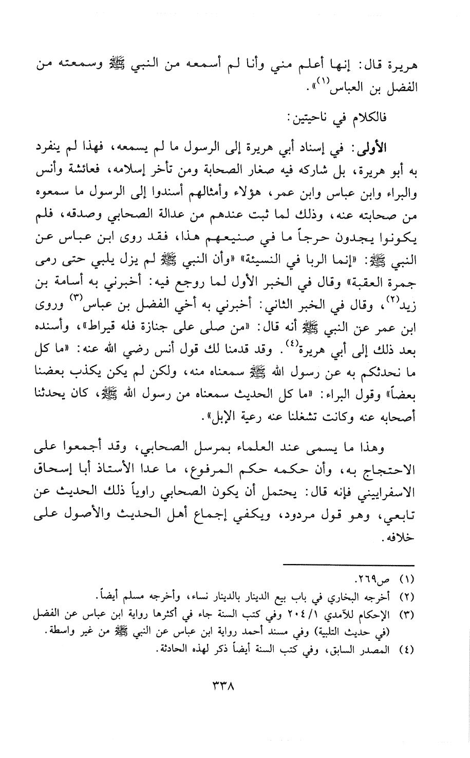 (¬3) " الأحكام " للآمدي: 1/ 204 وفي كتب السُنّةِ جاء أكثرها رواية ابن عباس عن الفضل (في حديث التلبية) وفي " مسند أحمد " رواية ابن عباس عَنْ النَّبِيِّ- صَلَّى اللهُ عَلَيْهِ وَسَلَّمَ - من غير واسطة.