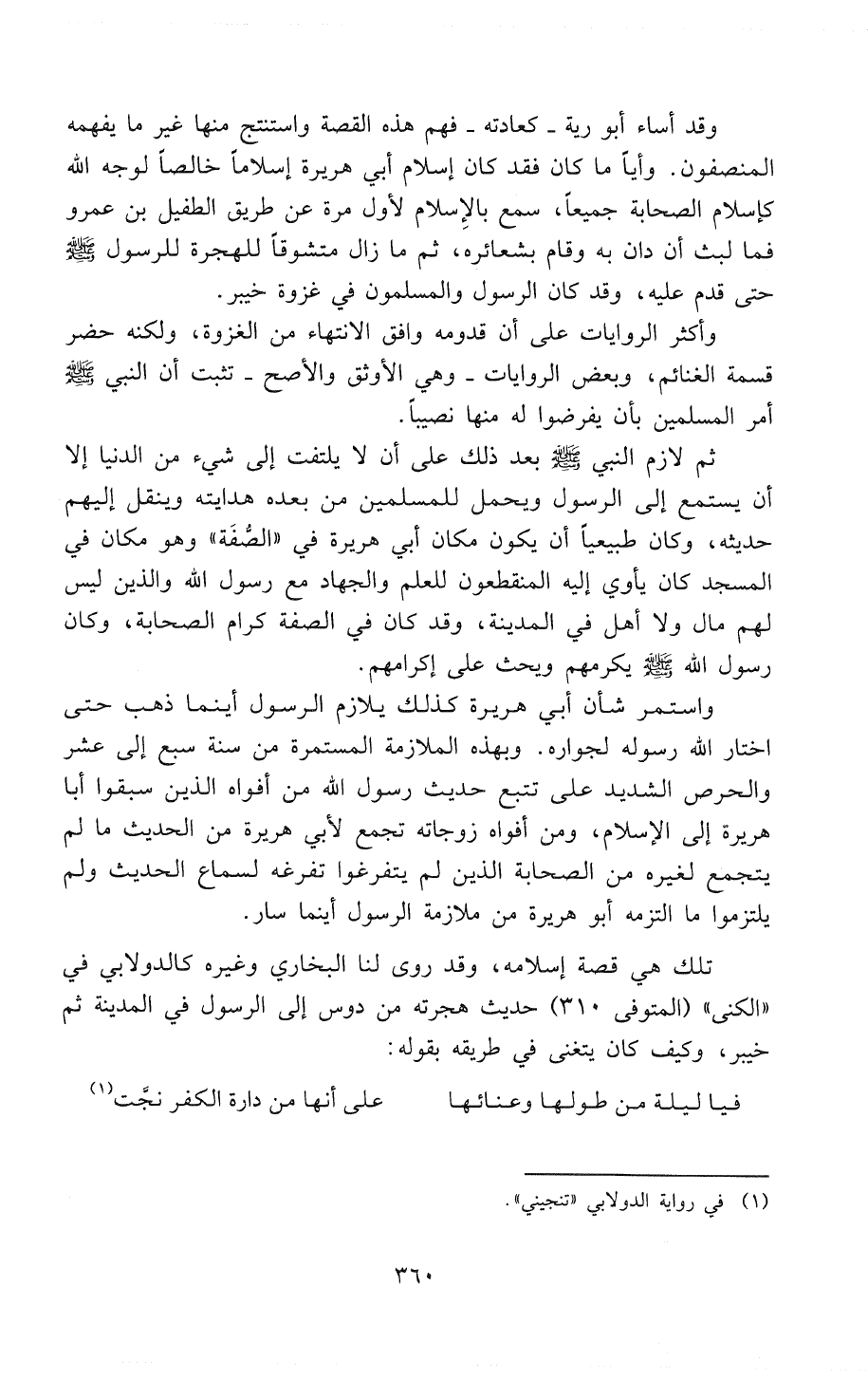 تلك هي قصة إسلامه، وقد روى لنا " البخاري " وغيره كالدولابي في " الكُنَى " (المُتَوَفَّى 310 هـ) حديث هجرته من دَوْسٍ إلى الرسول في المدينة ثم خيبر، وكيف كان يتغنى في طريقه بقوله: