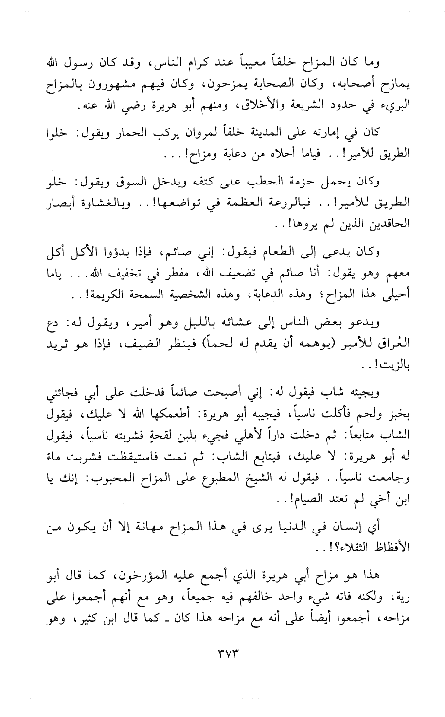 هذا هو مزاح أبي هريرة الذي أجمع عليه المُؤَرِّخُونَ، كما قال أَبُو رَيَّةَ، ولكنه فاته شيء واحد خالفهم فيه جميعاً، وهو مع أنهم أجمعوا على مزاحه، أجمعوا أيضاًً على أنه مع مزاحه هذا كان - كما قال ابن كثير، - وهو