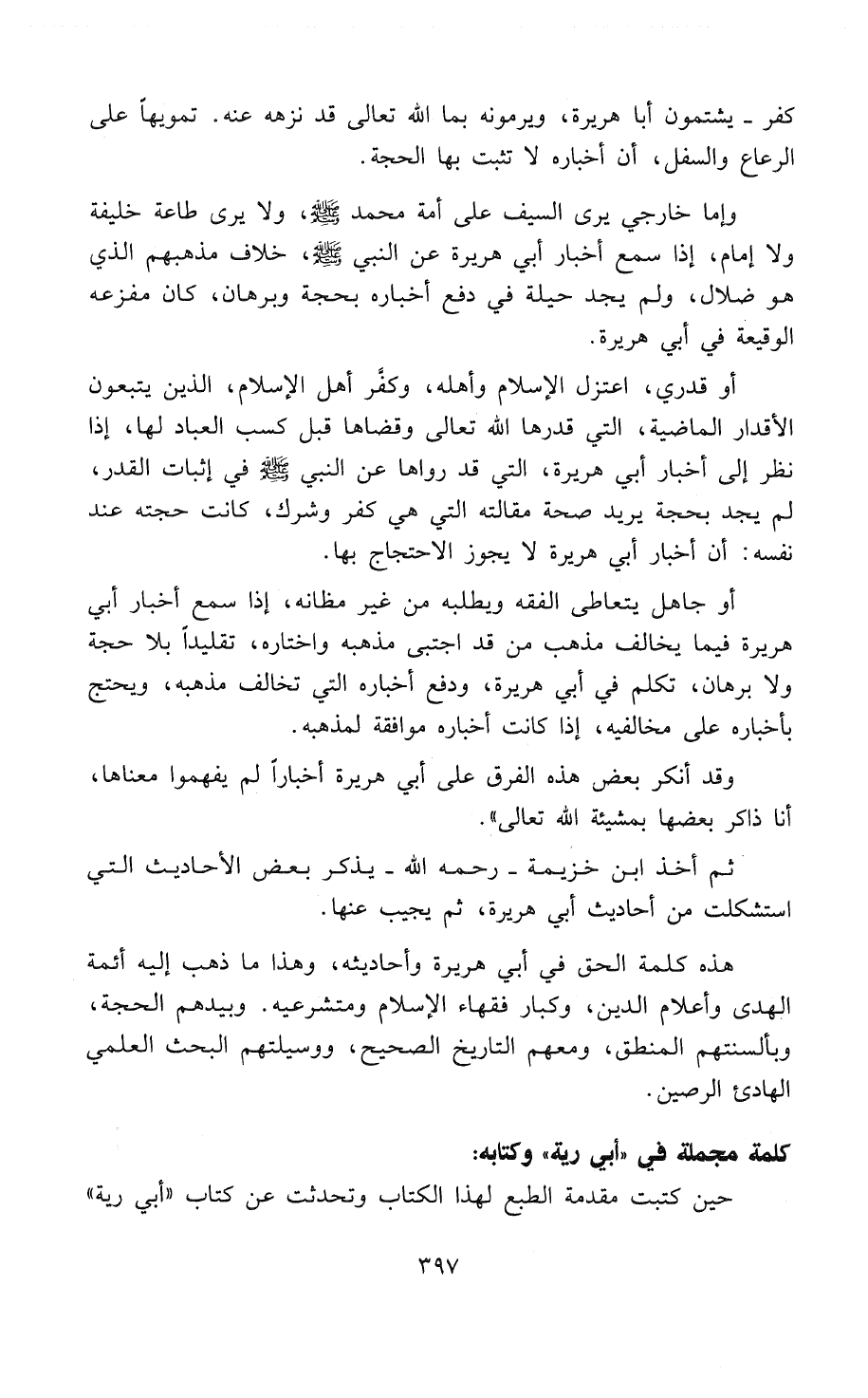 كَلِمَةٌ مُجْمَلَةٌ فِي «أَبِي رَيَّةَ» وَكِتَابِه: