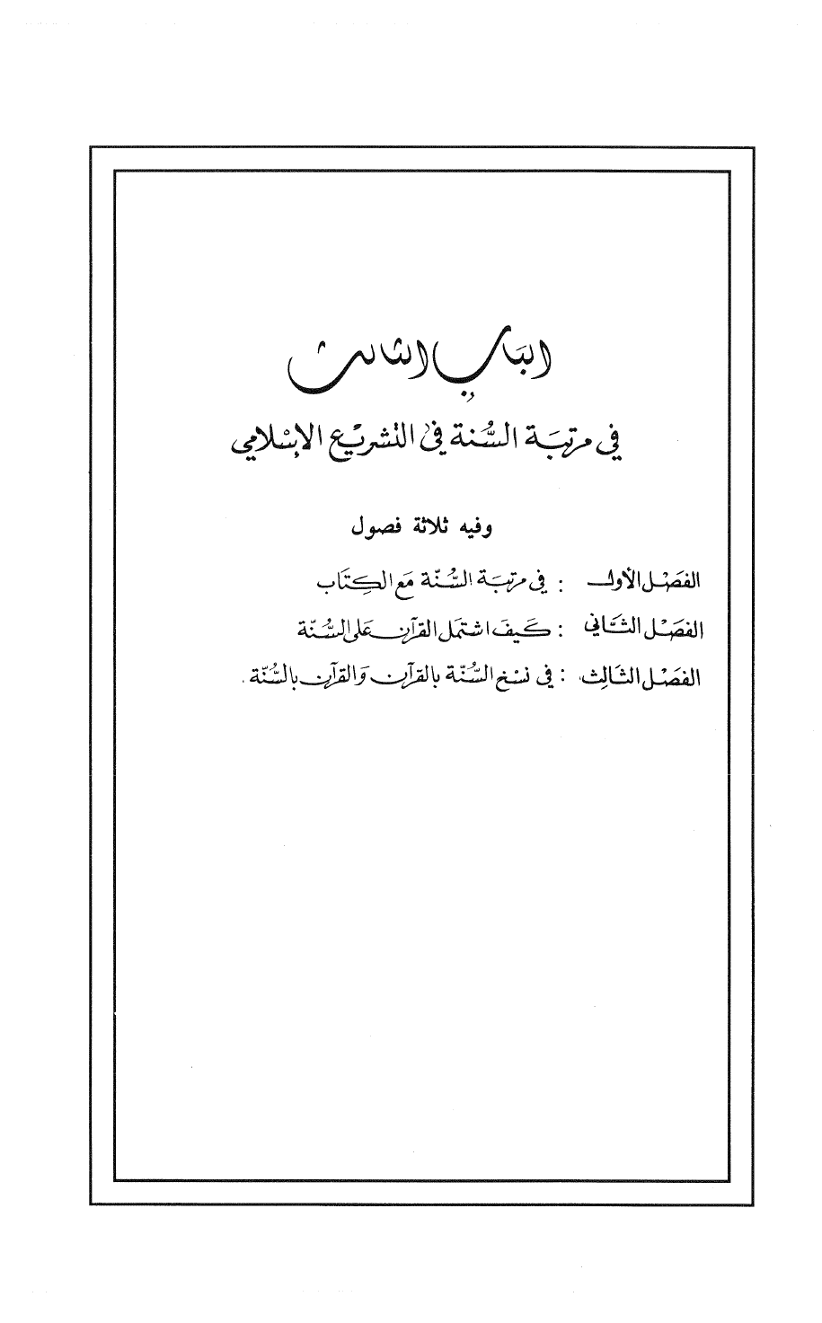 البَابُ الثَّالِثُ: فِي مَرْتَبَةِ السُنَّةِ فِي التَشْرِيعِ الإِسْلاَمِيِّ:
