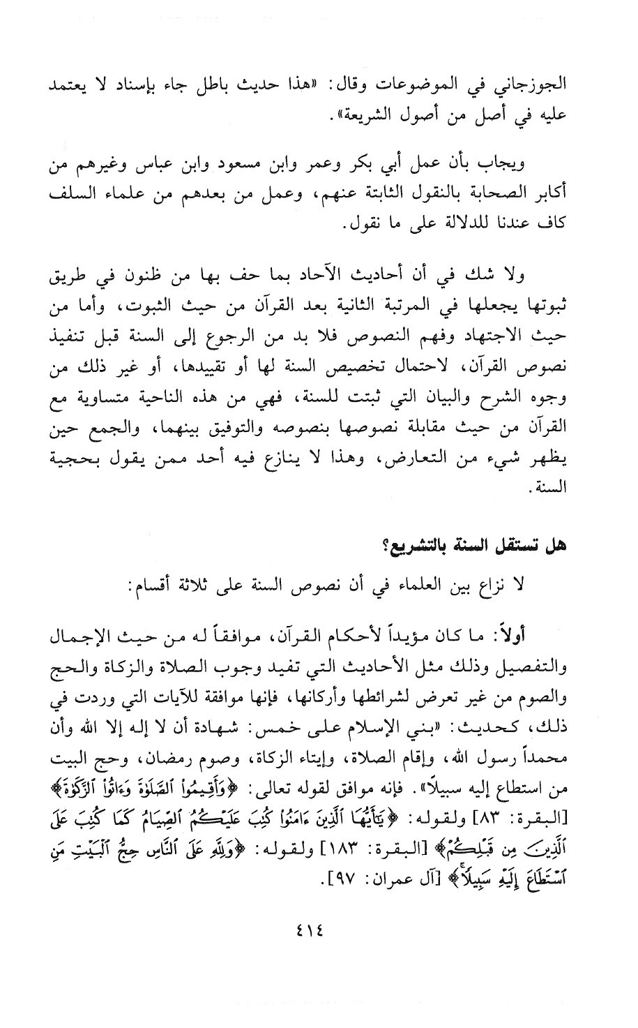 هَلْ تَسْتَقِلُّ السُنَّةُ بِالتَشْرِيعِ؟: