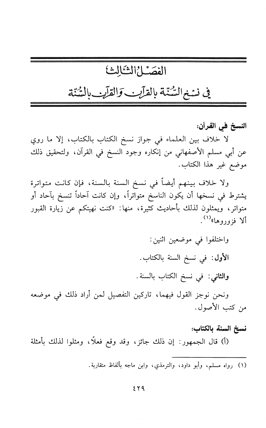 الفَصْلُ الثَّالِثُ: فِي نَسْخِ السُنَّةِ بِالقُرْآنِ وَالقُرْآنُ بِالسُنَّةِ: