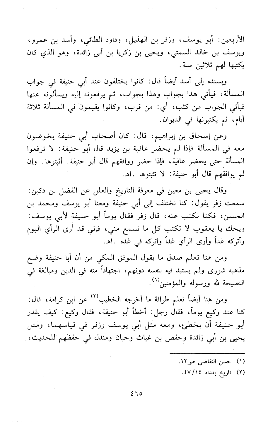 الأربعين: أبو يوسف. وزفر بن الهذيل، وداود الطائي، وأسد بن عمرو، ويوسف بن خالد السمتي، ويحيى بن زكريا بن أبي زائدة، وهو الذي كان يكتبها لهم ثلاثين سَنَةً.