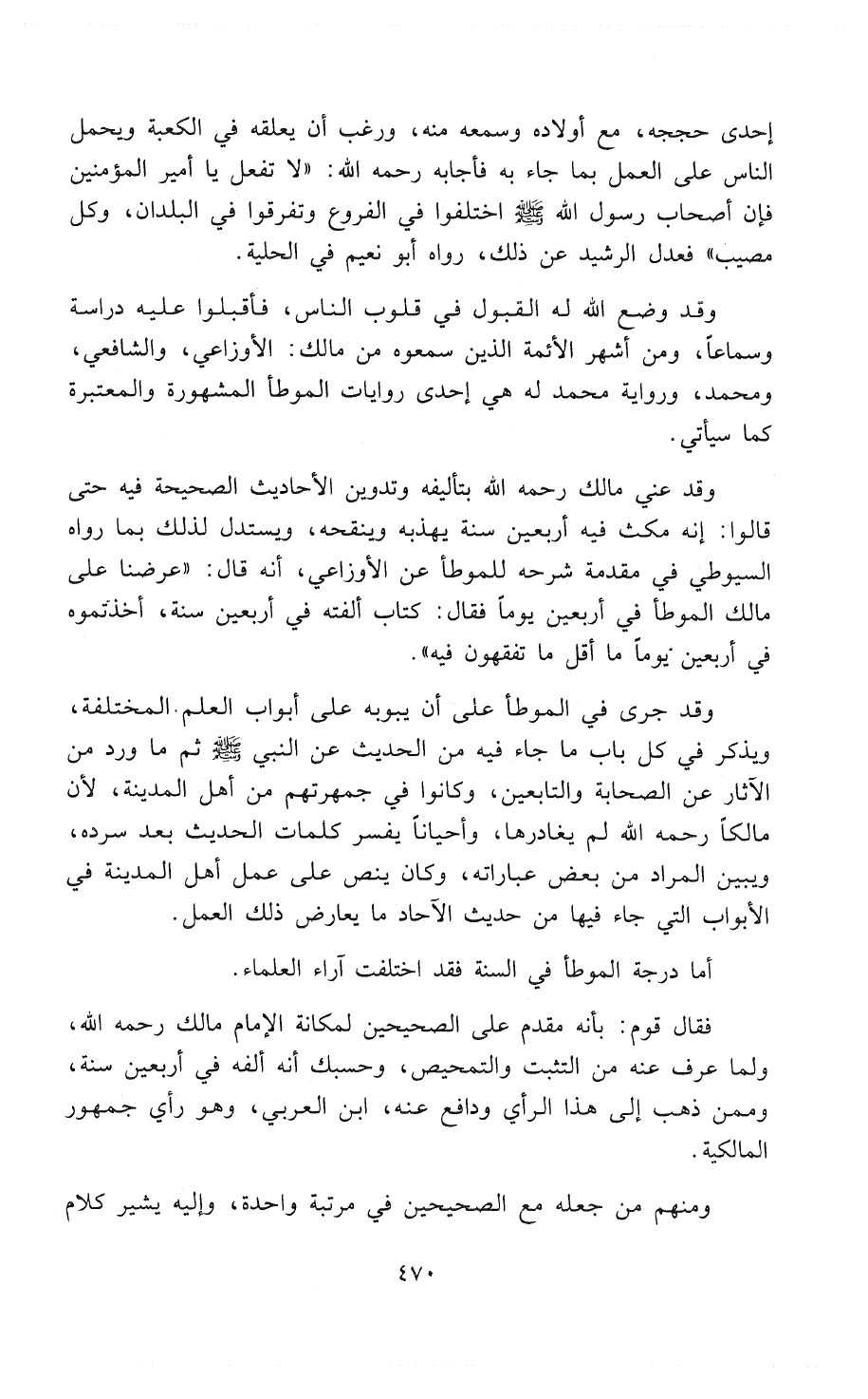 وقد عني مالك - رَحِمَهُ اللهُ - بتأليفه وتدوين الأحاديث الصحيحة فيه حتى قالوا: إنه مكث فيه أربعين سَنَةً يُهَذِّبُهُ وَيُنَقِّحُهُ، ويستدل لذلك بما رواه السيوطي في مقدمة " شرحه للموطأ " عن الأوزاعي، أنه قال: «عَرَضْنَا عَلَى مَالِكٍ " المُوَطَّأَ " فِي أَرْبَعِينَ يَوْمًا فَقَالَ: كِتَابٌ أَلَّفْتُهُ فِي أَرْبَعِينَ سَنَةٍ، أَخَذْتُمُوهُ فِي أَرْبَعِينَ يَوْمًا مَا أَقَلَّ مَا تَفْقَهُونَ فِيهِ».
