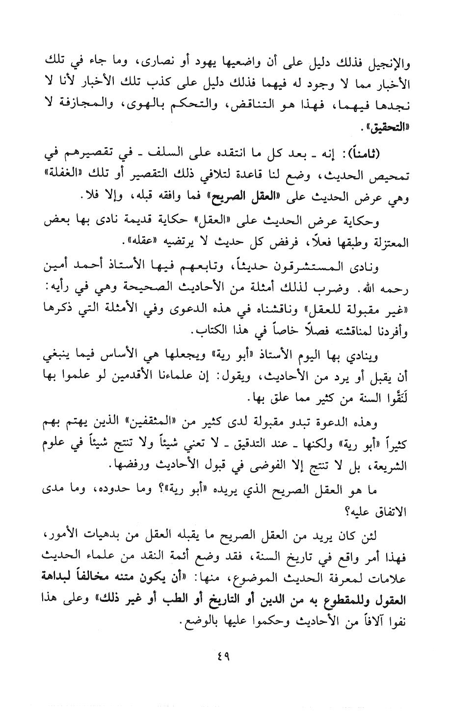 وهذه الدعوة تبدو مقبولة لدى كثير من «المُثَقَّفِينَ» الذين يهتم بهم كثيراً «أَبُو رَيَّةَ» ولكنها - عند التدقيق - لا تعني شيئاً ولا تنتج شيئاً في علوم الشريعة، بل لا تنتج إلا الفوضى في قبول الأحاديث ورفضها.