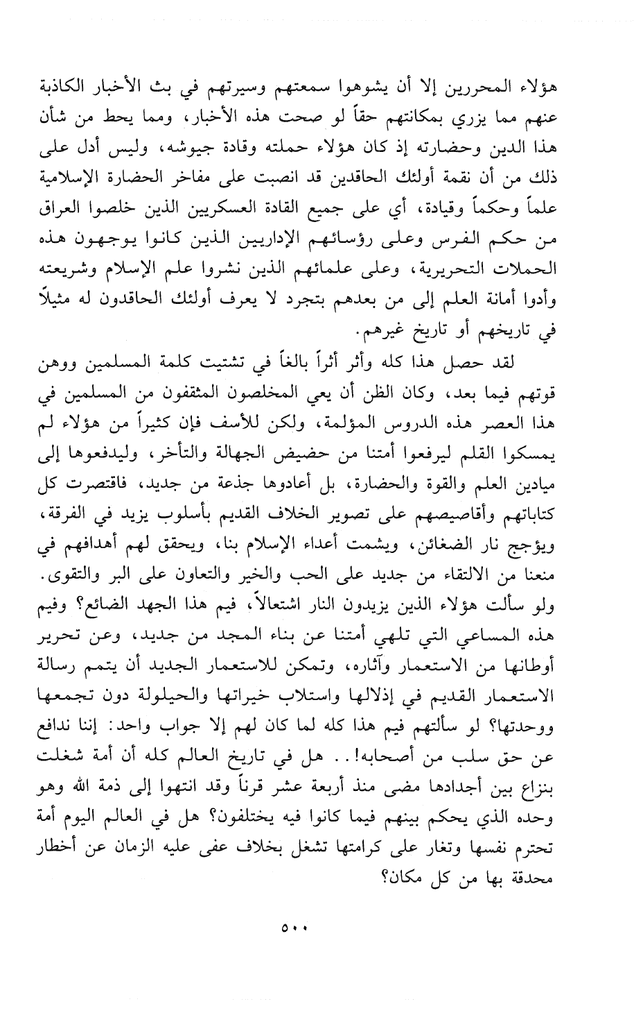 خَلَّصُوا العراق من حكم الفُرْسِ وعلى رؤسائهم الإداريين الذين كانوا يوجهون هذه الحملات التحريرية، وعلى علمائهم الذين نشروا علم الإسلام وشريعته وأدوا أمانة العلم إلى من بعدهم بتجرد لا يعرف أولئك الحاقدون له مثيلاً في تاريخهم أو تاريخ غيرهم.