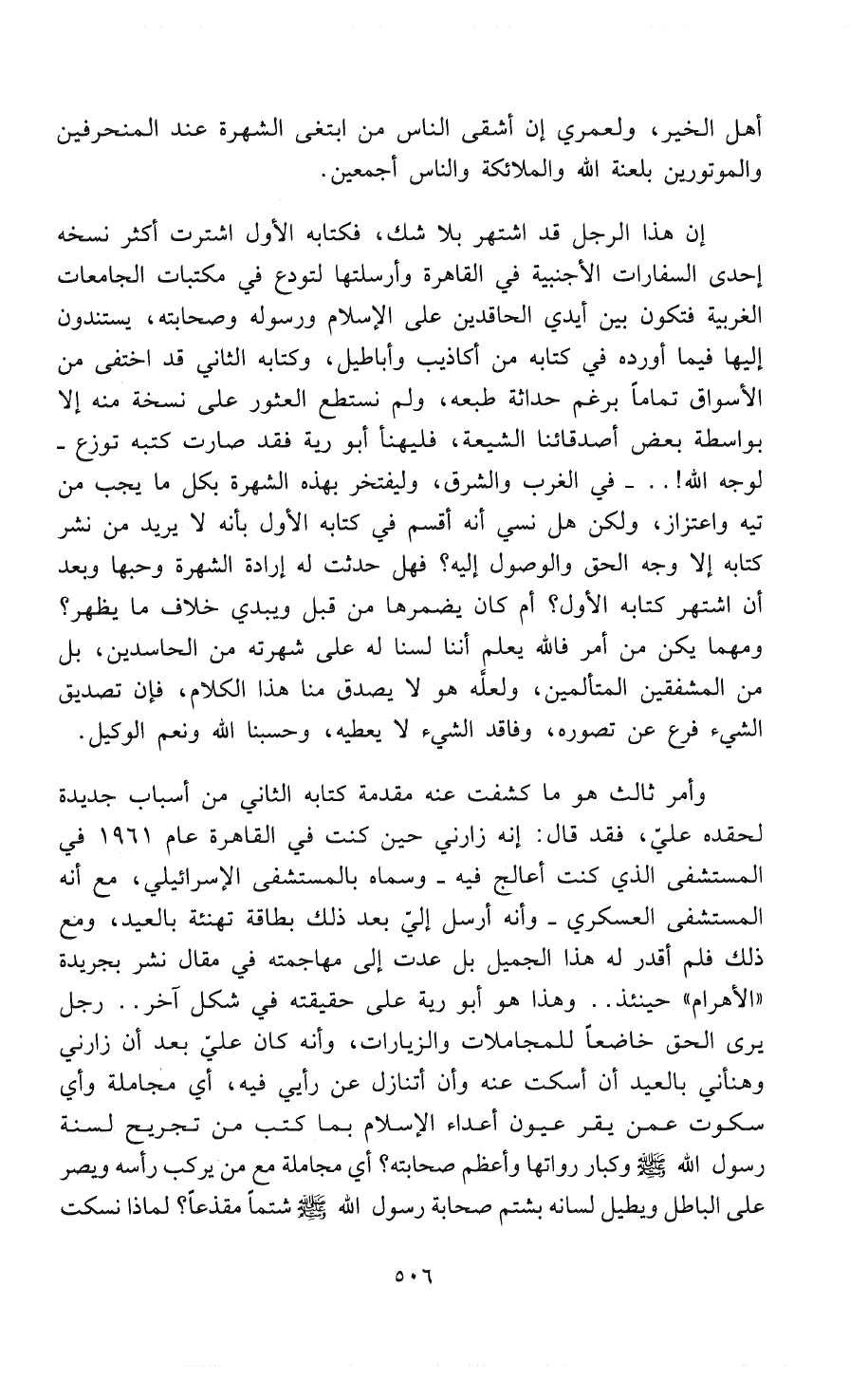 إن هذا الرجل قد اشتهر بلا شك، فكتابه الأول اشترت أكثر نسخه إحدى السفارات الأجنبية في القاهرة وأرسلتها لتودع في مكتبات الجامعات الغربية فتكون بين أيدي الحاقدين على الإسلام ورسوله وصحابته، يستندون إليها فيما أورده في كتابه من أكاذيب وأباطيل، وكتابه الثاني قد اختفى من الأسواق تماماً برغم حداثة طبعه، ولم نستطع العثور على نسخة منه إلا بواسطة بعض أصدقائنا الشيعة، فليهنأ أَبُو رَيَّةَ فقد صارت كتبه تُوَزَّعُ - لوجه الله! .. في الغرب والشرق، وليفتخر بهذه الشهرة بكل ما يجب من تيه واعتزاز، ولكن هل نسي أنه أقسم في كتابه الأول بأنه لا يريد من نشر كتابه إلا وجه الحق والوصول إليه؟ فهل حدثت له إرادة الشهرة وحبها وبعد أن اشتهر كتابه الأول؟ أم كان يضمرها من قبل ويبدي خلاف ما يظهر؟ ومهما يكن من أمر فالله يعلم أننا لسنا له على شهرته من الحاسدين، بل من المشفقين المتألمين، وَلَعَلَّهُ هو لا يصدق منا هذا الكلام، فإن تصديق الشيء فرع من تَصَوُّرِهِ، وفاقد الشيء لا يعطيه، وحسبنا الله ونعم الوكيل.