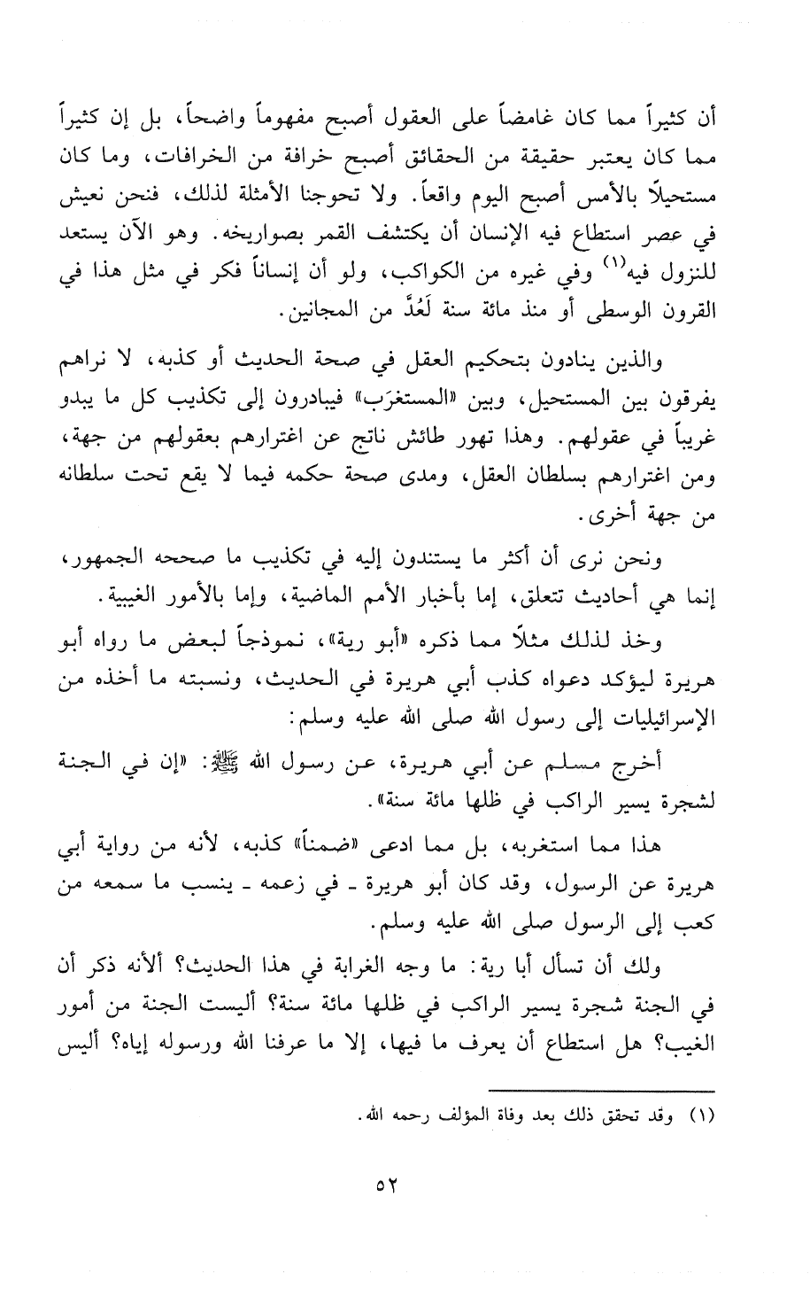 ولك أن تسأل أَبَا رَيَّةَ: ما وجه الغرابة في هذا الحديث؟ ألأنه ذكر أن في الجنة شجرة يسير الراكب في ظلها مائة سَنَةٍ؟ أليست الجنة من أمور الغيب؟ هل استطاع أن يعرف ما فيها، إلا مِمَّا عَرَّفَنَا اللهُ وَرَسُولُه ُإِيَّاهُ؟ أليس