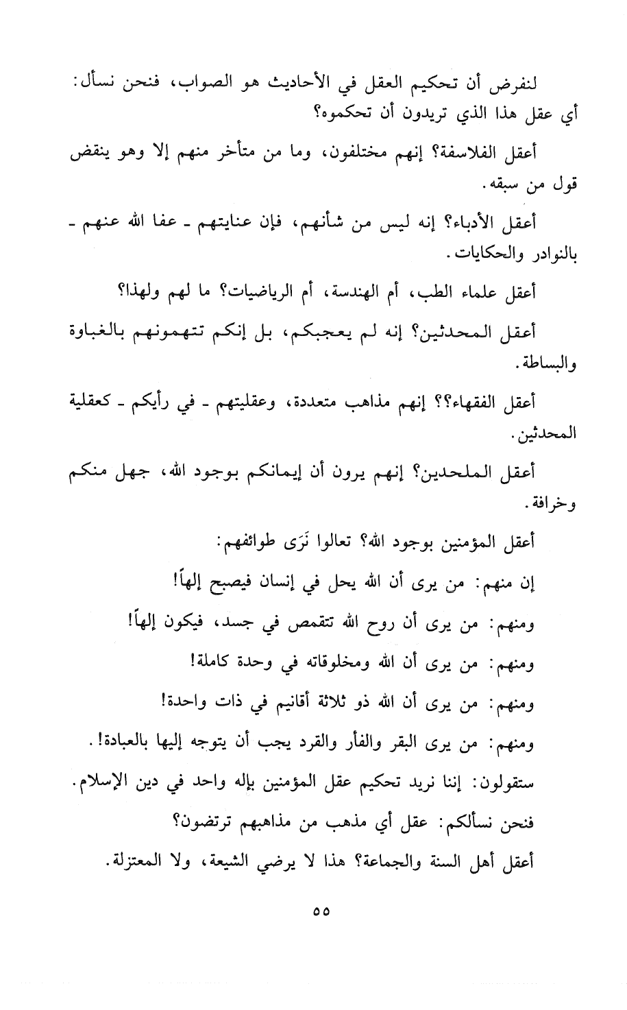 أعقل أهل السُنَّة والجماعة؟ هذا لا يرضي الشِّيعَة، ولا المعتزلة.