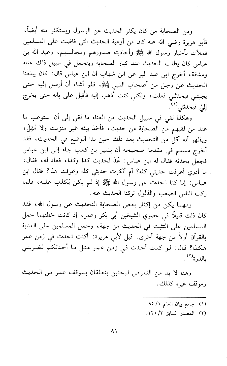 وهنا لا بد من التعرض لبحثين يتعلقان بموقف عمر من الحديث وموقف غيره كذلك.