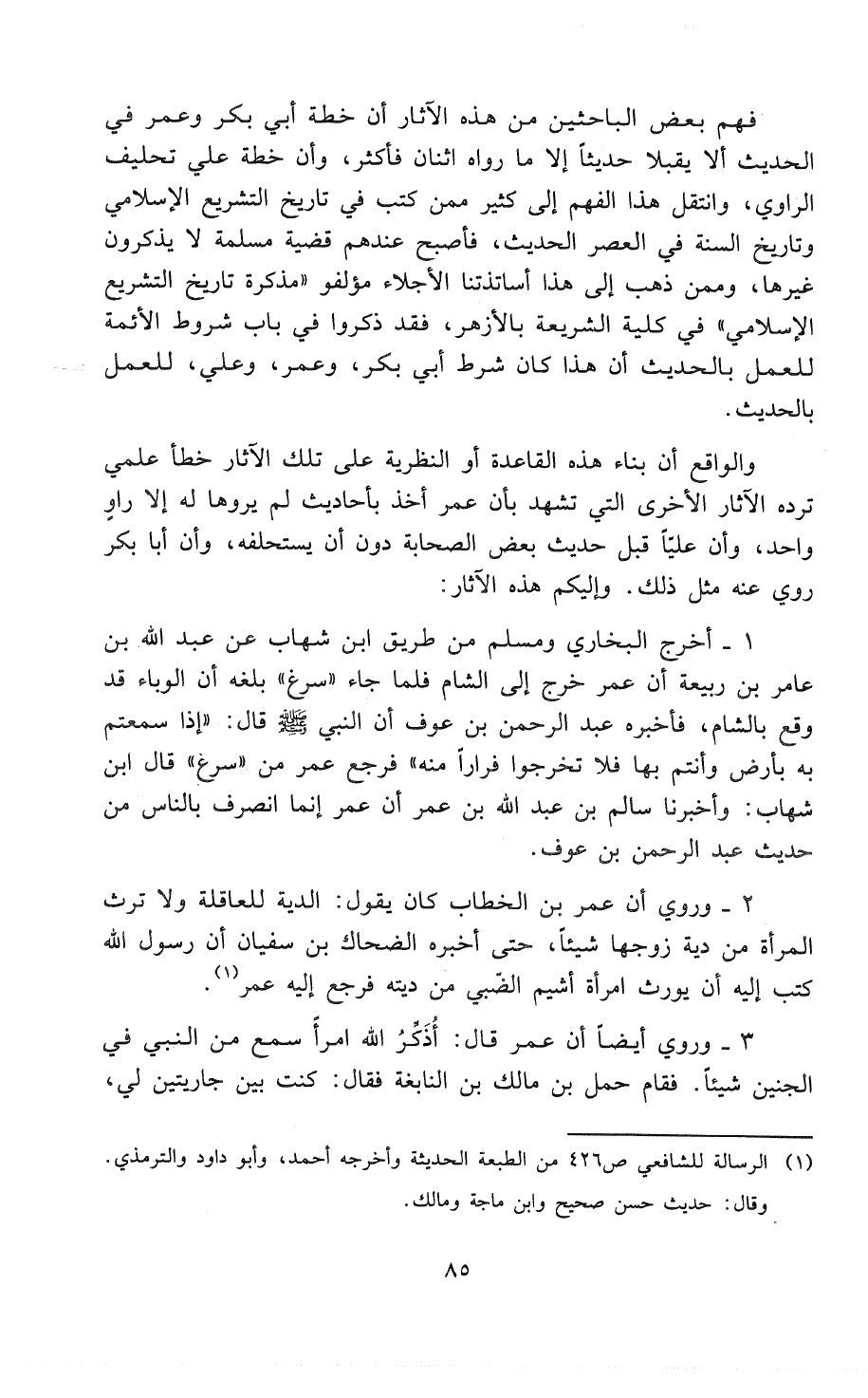 فهم بعض الباحثين من هذه الآثار أن خِطَّةَ أبي بكر وعمر في الحديث ألاَّ يقبلا حَدِيثًا إلا ما رواه اثنان فأكثر، وأن خِطَّةَ عَلِيٍّ على تحليف الراوي، وانتقل هذا الفهم إلى كثير مِمَّنْ كتب في تاريخ التشريع الإسلامي وتاريخ السُنَّةِ في العصر الحديث، فأصبح عندهم قَضِيَّةً مُسَلَّمَةً لا يذكرون غيرها، وَمِمَّنْ ذهب إلى هذا أَسَاتِذَتُنَا الأَجِلاَّءُ مُؤَلِّفُو " مذكرة تاريخ التشريع الإسلامي " في كلية الشريعة بالأزهر، فقد ذكروا في " باب شروط الأئمة للعمل بالحديث " أن هذا كان شرط أبي بكر، وعمر، وَعَلِيٍّ، للعمل بالحديث.