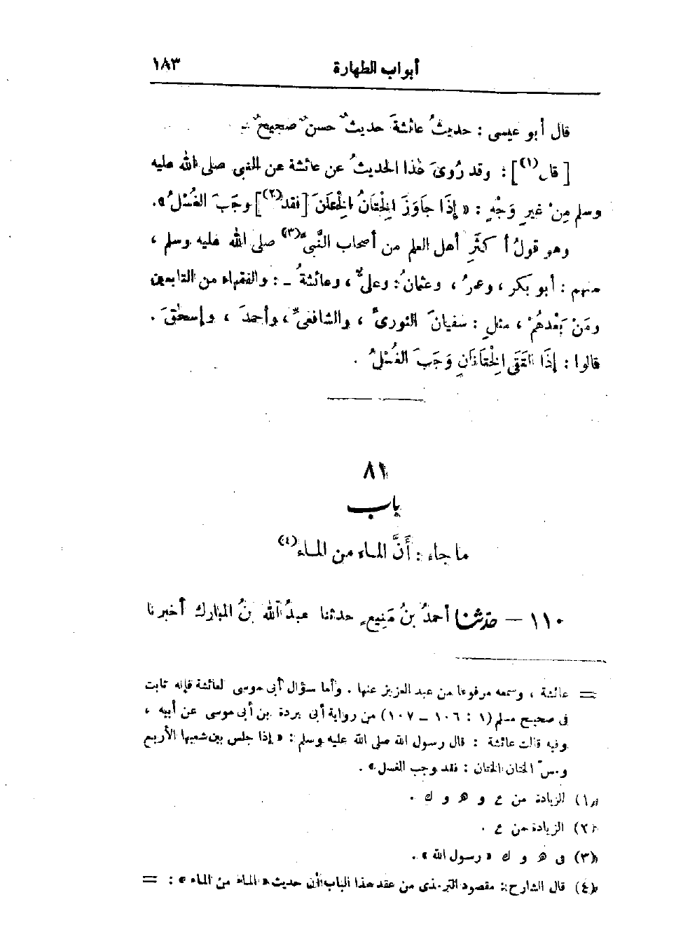 110 - حَدَّثَنَا أَحْمَدُ بْنُ مَنِيعٍ قَالَ: حَدَّثَنَا عَبْدُ اللَّهِ بْنُ المُبَارَكِقَالَ: حَدَّثَنَا -[184]- يُونُسُ بْنُ يَزِيدَ، عَنْ الزُّهْرِيِّ، عَنْ سَهْلِ بْنِ سَعْدٍ، عَنْ أُبَيِّ بْنِ كَعْبٍ، قَالَ: «إِنَّمَا §كَانَ المَاءُ مِنَ المَاءِ رُخْصَةً فِي أَوَّلِ الإِسْلَامِ، ثُمَّ نُهِيَ عَنْهَا»،