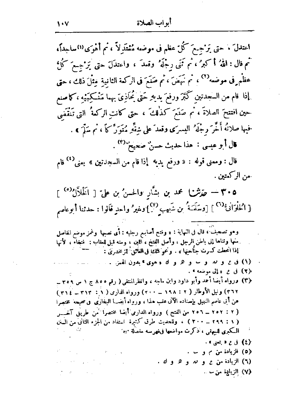 305 - حَدَّثَنَا مُحَمَّدُ بْنُ بَشَّارٍ، وَالحَسَنُ بْنُ عَلِيٍّ الحُلْوَانِيُّ، وَغَيْرُ وَاحِدٍ، قَالُوا: حَدَّثَنَا أَبُو عَاصِمٍ، -[108]- حَدَّثَنَا عَبْدُ الحَمِيدِ بْنُ جَعْفَرٍ قَالَ: حَدَّثَنَا مُحَمَّدُ بْنُ عَمْرِو بْنِ عَطَاءٍ، قَالَ: سَمِعْتُ أَبَا حُمَيْدٍ السَّاعِدِيَّ، فِي عَشَرَةٍ مِنْ أَصْحَابِ النَّبِيِّ صَلَّى اللَّهُ عَلَيْهِ وَسَلَّمَ فِيهِمْ: أَبُو قَتَادَةَ بْنُ رِبْعِيٍّ، فَذَكَرَ نَحْوَ حَدِيثِ يَحْيَى بْنِ سَعِيدٍ بِمَعْنَاهُ، وَزَادَ فِيهِ أَبُو عَاصِمٍ، عَنْ عَبْدِ الحَمِيدِ بْنِ جَعْفَرٍ، هَذَا الحَرْفَ، قَالُوا: صَدَقْتَ، هَكَذَا صَلَّى النَّبِيُّ صَلَّى اللَّهُ عَلَيْهِ وَسَلَّمَ