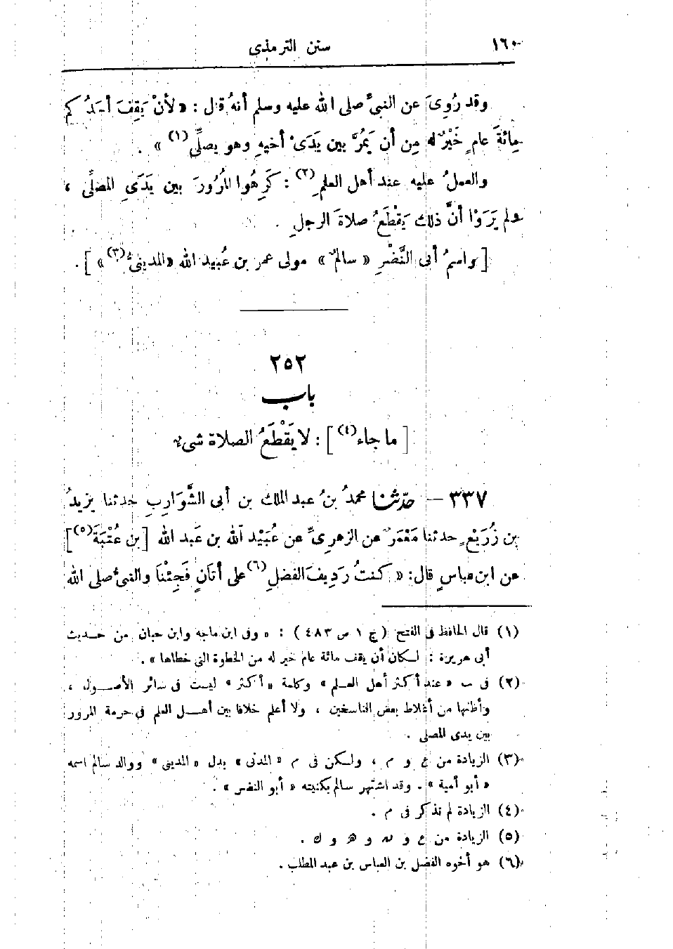 337 - حَدَّثَنَا مُحَمَّدُ بْنُ عَبْدِ المَلِكِ بْنِ أَبِي الشَّوَارِبِ قَالَ: حَدَّثَنَا يَزِيدُ بْنُ زُرَيْعٍ قَالَ: حَدَّثَنَا مَعْمَرٌ، عَنْ الزُّهْرِيِّ، عَنْ عُبَيْدِ اللَّهِ بْنِ عَبْدِ اللَّهِ بْنِ عُتْبَةَ، عَنْ ابْنِ عَبَّاسٍ قَالَ: كُنْتُ رَدِيفَ الفَضْلِ عَلَى أَتَانٍ، فَجِئْنَا " وَالنَّبِيُّ صَلَّى اللَّهُ -[161]- عَلَيْهِ وَسَلَّمَ §يُصَلِّي بِأَصْحَابِهِ بِمِنًى، قَالَ: فَنَزَلْنَا عَنْهَا فَوَصَلْنَا الصَّفَّ، فَمَرَّتْ بَيْنَ أَيْدِيهِمْ، فَلَمْ تَقْطَعْ صَلَاتَهُمْ "،: وَفِي البَابِ عَنْ عَائِشَةَ، وَالفَضْلِ بْنِ عَبَّاسٍ، وَابْنِ عُمَرَ،: «وَحَدِيثُ ابْنِ عَبَّاسٍ حَدِيثٌ حَسَنٌ صَحِيحٌ»، " وَالعَمَلُ عَلَيْهِ عِنْدَ أَكْثَرِ أَهْلِ العِلْمِ مِنْ أَصْحَابِ النَّبِيِّ صَلَّى اللَّهُ عَلَيْهِ وَسَلَّمَ، وَمَنْ بَعْدَهُمْ مِنَ التَّابِعِينَ، قَالُوا: لَا يَقْطَعُ الصَّلَاةَ شَيْءٌ، وَبِهِ يَقُولُ سُفْيَانُ، وَالشَّافِعِيُّ "