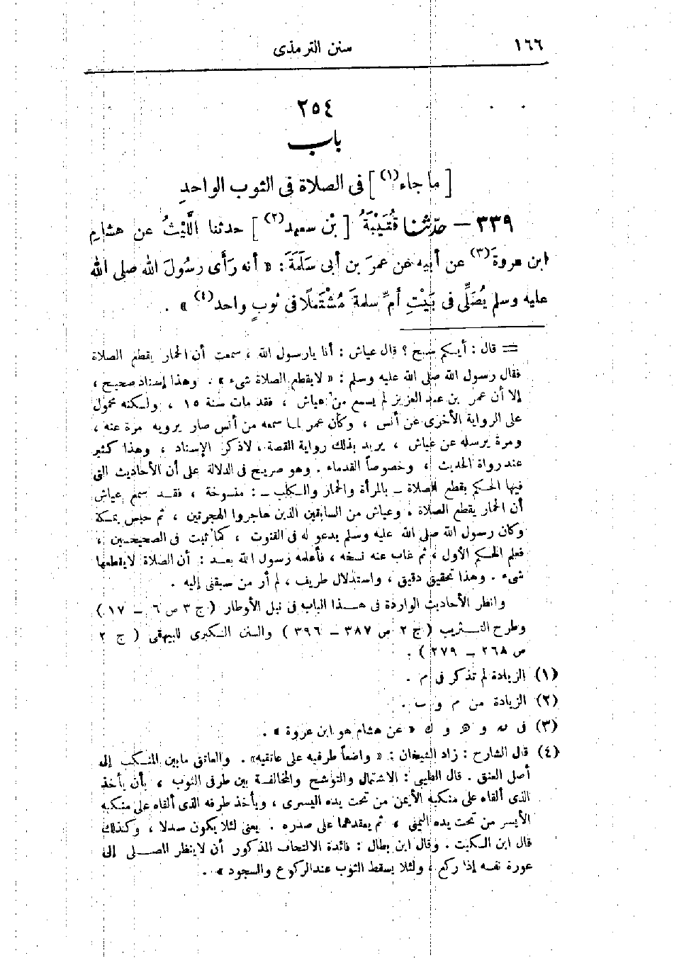 339 - حَدَّثَنَا قُتَيْبَةُ قَالَ: حَدَّثَنَا اللَّيْثُ، عَنْ هِشَامٍ هُوَ ابْنُ عُرْوَةَ، عَنْ أَبِيهِ، عَنْ عُمَرَ بْنِ أَبِي سَلَمَةَ أَنَّهُ، «رَأَى رَسُولَ اللَّهِ صَلَّى اللَّهُ عَلَيْهِ وَسَلَّمَ §يُصَلِّي فِي بَيْتِ أُمِّ سَلَمَةَ مُشْتَمِلًا فِي ثَوْبٍ وَاحِدٍ»، -[167]- وَفِي البَابِ عَنْ أَبِي هُرَيْرَةَ، وَجَابِرٍ، وَسَلَمَةَ بْنِ الأَكْوَعِ، وَأَنَسٍ، وَعَمْرِو بْنِ أَبِي أَسِيدٍ، وَعُبَادَةَ بْنِ الصَّامِتِ، وَأَبِي سَعِيدٍ، وَكَيْسَانَ، وَابْنِ عَبَّاسٍ، وَعَائِشَةَ، وَأُمِّ هَانِئٍ، وَعَمَّارِ بْنِ يَاسِرٍ، وَطَلْقِ بْنِ عَلِيٍّ، وَصَامِتٍ الأَنْصَارِيِّ،: -[168]- «حَدِيثُ عُمَرَ بْنِ أَبِي سَلَمَةَ حَدِيثٌ حَسَنٌ صَحِيحٌ»، " وَالعَمَلُ عَلَى هَذَا عِنْدَ أَكْثَرِ أَهْلِ العِلْمِ مِنْ أَصْحَابِ النَّبِيِّ صَلَّى اللَّهُ عَلَيْهِ وَسَلَّمَ، وَمَنْ بَعْدَهُمْ مِنَ التَّابِعِينَ، وَغَيْرِهِمْ قَالُوا: لَا بَأْسَ بِالصَّلَاةِ فِي الثَّوْبِ الوَاحِدِ «،» وَقَدْ قَالَ بَعْضُ أَهْلِ العِلْمِ: يُصَلِّي الرَّجُلُ فِي ثَوْبَيْنِ "
