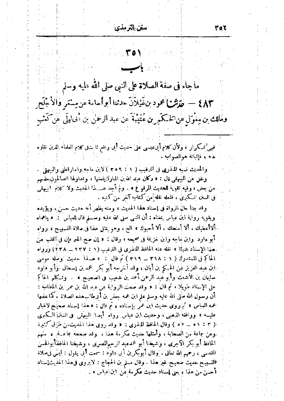 483 - حَدَّثَنَا مَحْمُودُ بْنُ غَيْلَانَ قَالَ: حَدَّثَنِي أَبُو أُسَامَةَ، عَنْ مِسْعَرٍ، وَالأَجْلَحِ، وَمَالِكِ بْنِ مِغْوَلٍ، عَنْ الحَكَمِ بْنِ عُتَيْبَةَ، عَنْ عَبْدِ الرَّحْمَنِ بْنِ أَبِي لَيْلَى، عَنْ كَعْبِ -[353]- بْنِ عُجْرَةَ، قَالَ: قُلْنَا: يَا رَسُولَ اللَّهِ، هَذَا السَّلَامُ عَلَيْكَ قَدْ عَلِمْنَا، فَكَيْفَ الصَّلَاةُ عَلَيْكَ؟ قَالَ: " §قُولُوا: اللَّهُمَّ صَلِّ عَلَى مُحَمَّدٍ وَعَلَى آلِ مُحَمَّدٍ، كَمَا صَلَّيْتَ عَلَى إِبْرَاهِيمَ إِنَّكَ حَمِيدٌ مَجِيدٌ، وَبَارِكْ عَلَى مُحَمَّدٍ وَعَلَى آلِ مُحَمَّدٍ، كَمَا بَارَكْتَ عَلَى إِبْرَاهِيمَ إِنَّكَ حَمِيدٌ مَجِيدٌ "، قَالَ مَحْمُودٌ: قَالَ أَبُو أُسَامَةَ: وَزَادَنِي زَائِدَةُ، عَنِ الأَعْمَشِ، عَنِ الحَكَمِ، عَنْ عَبْدِ الرَّحْمَنِ بْنِ أَبِي لَيْلَى، قَالَ: وَنَحْنُ نَقُولُ: وَعَلَيْنَا مَعَهُمْ، وَفِي البَابِ عَنْ عَلِيٍّ، وَأَبِي حُمَيْدٍ، وَأَبِي مَسْعُودٍ، وَطَلْحَةَ، وَأَبِي سَعِيدٍ، وَبُرَيْدَةَ، وَزَيْدِ بْنِ خَارِجَةَ، وَيُقَالُ: ابْنُ جَارِيَةَ، وَأَبِي هُرَيْرَةَ: -[354]- «حَدِيثُ كَعْبِ بْنِ عُجْرَةَ حَدِيثٌ حَسَنٌ صَحِيحٌ»، «وَعَبْدُ الرَّحْمَنِ بْنُ أَبِي لَيْلَى كُنْيَتُهُ أَبُو عِيسَى، وَأَبُو لَيْلَى اسْمُهُ يَسَارٌ»