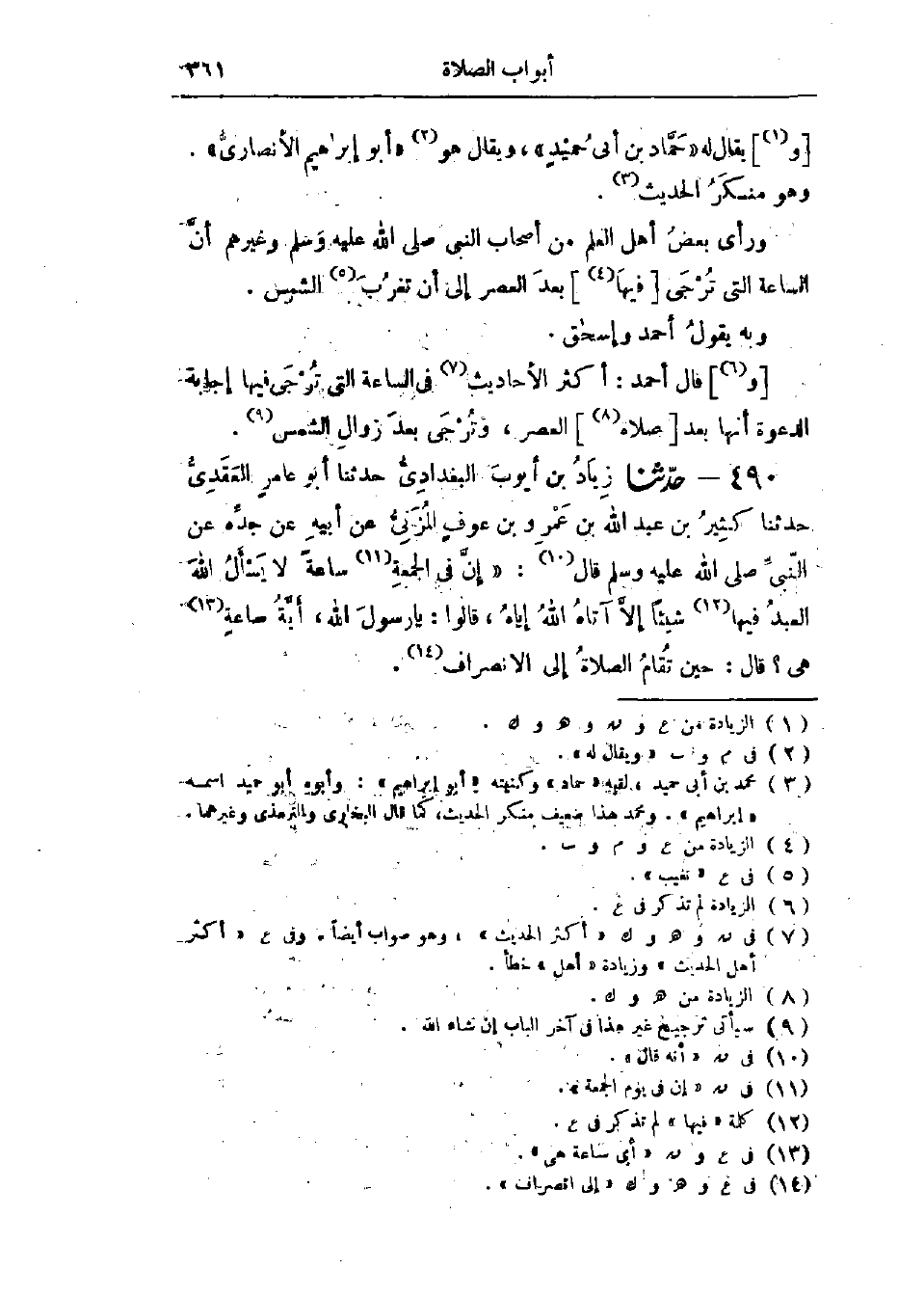 490 - حَدَّثَنَا زِيَادُ بْنُ أَيُّوبَ البَغْدَادِيُّ قَالَ: حَدَّثَنَا أَبُو عَامِرٍ العَقَدِيُّ قَالَ: حَدَّثَنَا كَثِيرُ بْنُ عَبْدِ اللَّهِ بْنِ عَمْرِو بْنِ عَوْفٍ المُزَنِيُّ، عَنْ أَبِيهِ، عَنْ جَدِّهِ، عَنِ النَّبِيِّ صَلَّى اللَّهُ عَلَيْهِ وَسَلَّمَ قَالَ: «إِنَّ §فِي الجُمُعَةِ سَاعَةً لَا يَسْأَلُ اللَّهَ العَبْدُ فِيهَا شَيْئًا إِلَّا آتَاهُ اللَّهُ إِيَّاهُ»، قَالُوا: يَا رَسُولَ اللَّهِ، أَيَّةُ سَاعَةٍ هِيَ؟ قَالَ: «حِينَ تُقَامُ الصَّلَاةُ إِلَى انْصِرَافٍ مِنْهَا» -[362]- وَفِي البَابِ عَنْ أَبِي مُوسَى، وَأَبِي ذَرٍّ، وَسَلْمَانَ، وَعَبْدِ اللَّهِ بْنِ سَلَامٍ، وَأَبِي لُبَابَةَ، وَسَعْدِ بْنِ عُبَادَةَ، وَأَبِي أُمَامَةَ: «حَدِيثُ عَمْرِو بْنِ عَوْفٍ حَدِيثٌ حَسَنٌ غَرِيبٌ»