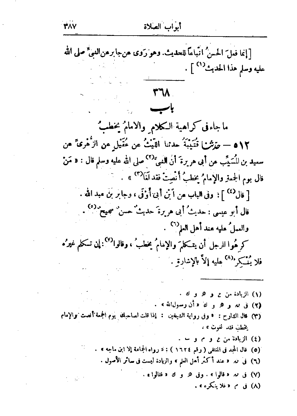 بَابُ مَا جَاءَ فِي كَرَاهِيَةِ الكَلَامِ وَالإِمَامُ يَخْطُبُ