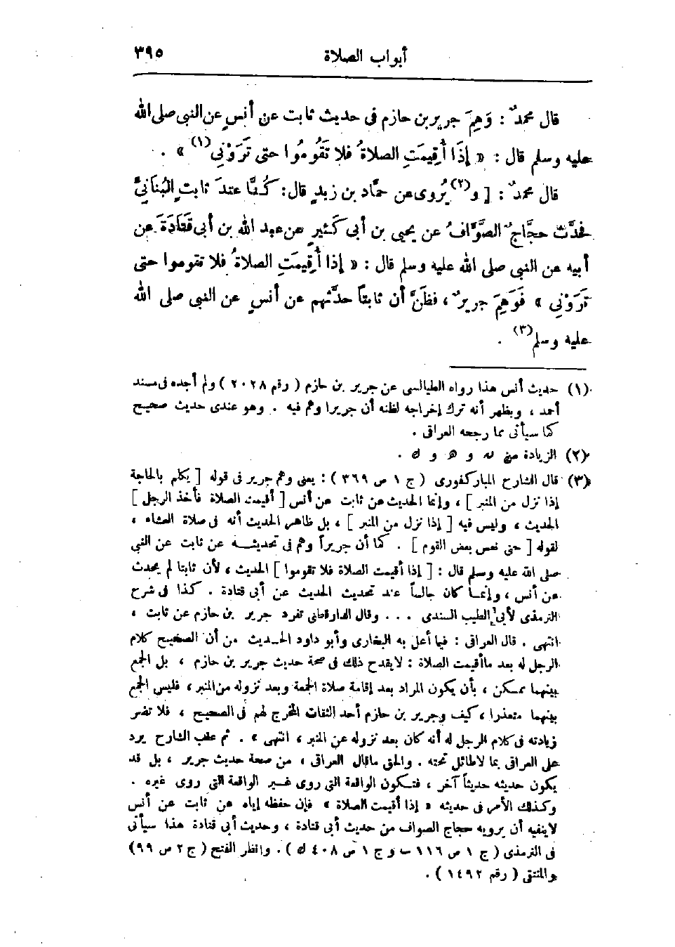 قَالَ مُحَمَّدٌ: وَيُرْوَى عَنْ حَمَّادِ بْنِ زَيْدٍ، قَالَ: كُنَّا عِنْدَ ثَابِتٍ البُنَانِيِّ، فَحَدَّثَ حَجَّاجٌ الصَّوَّافُ، عَنْ يَحْيَى بْنِ أَبِي كَثِيرٍ، عَنْ عَبْدِ اللَّهِ بْنِ أَبِي قَتَادَةَ، عَنْ أَبِيهِ، عَنِ النَّبِيِّ صَلَّى اللَّهُ عَلَيْهِ وَسَلَّمَ قَالَ: «§إِذَا أُقِيمَتِ الصَّلَاةُ فَلَا تَقُومُوا حَتَّى تَرَوْنِي» فَوَهِمَ جَرِيرٌ، فَظَنَّ أَنَّ ثَابِتًا حَدَّثَهُمْ، عَنْ أَنَسٍ، عَنِ النَّبِيِّ صَلَّى اللَّهُ عَلَيْهِ وَسَلَّمَ