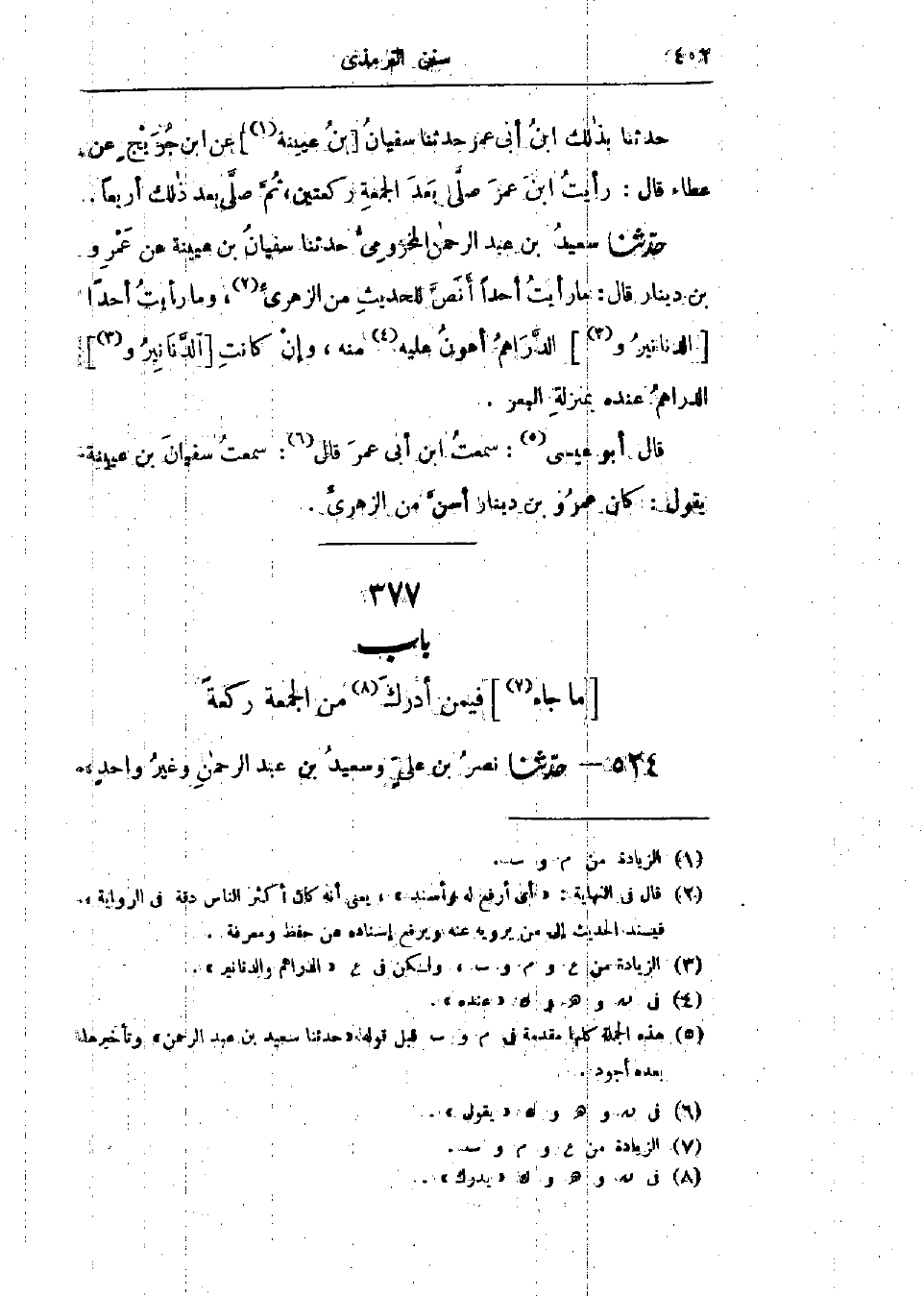 قَالَ: حَدَّثَنَا سُفْيَانُ بْنُ عُيَيْنَةَ، عَنْ ابْنِ جُرَيْجٍ، عَنْ عَطَاءٍ، قَالَ: «رَأَيْتُ ابْنَ عُمَرَ §صَلَّى بَعْدَ الجُمُعَةِ رَكْعَتَيْنِ ثُمَّ صَلَّى بَعْدَ ذَلِكَ أَرْبَعًا» حَدَّثَنَا سَعِيدُ بْنُ عَبْدِ الرَّحْمَنِ المَخْزُومِيُّ قَالَ: حَدَّثَنَا سُفْيَانُ بْنُ عُيَيْنَةَ، عَنْ عَمْرِو بْنِ دِينَارٍ، قَالَ: «مَا رَأَيْتُ أَحَدًا أَنَصَّ لِلْحَدِيثِ مِنَ الزُّهْرِيِّ، وَمَا رَأَيْتُ أَحَدًا الدَّنَانِيرُ وَالدَّرَاهِمُ أَهْوَنُ عَلَيْهِ مِنْهُ إِنْ كَانَتِ الدَّنَانِيرُ وَالدَّرَاهِمُ عِنْدَهُ بِمَنْزِلَةِ البَعْرِ»: سَمِعْتُ ابْنَ أَبِي عُمَرَ، قَالَ: سَمِعْتُ سُفْيَانَ بْنَ عُيَيْنَةَ يَقُولُ: «كَانَ عَمْرُو بْنُ دِينَارٍ أَسَنَّ مِنَ الزُّهْرِيِّ»