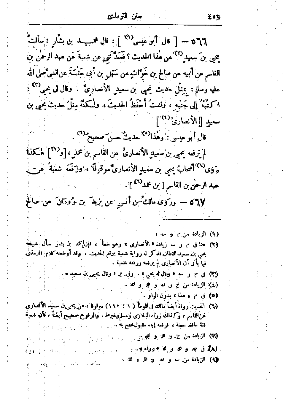 566 - قَالَ مُحَمَّدُ بْنُ بَشَّارٍ: سَأَلْتُ يَحْيَى بْنَ سَعِيدٍ عَنْ هَذَا الحَدِيثِ؟ فَحَدَّثَنِي عَنْ شُعْبَةَ، عَنْ عَبْدِ الرَّحْمَنِ بْنِ القَاسِمِ، عَنْ أَبِيهِ، عَنْ صَالِحِ بْنِ خَوَّاتٍ، عَنْ سَهْلِ بْنِ أَبِي حَثْمَةَ، عَنِ النَّبِيِّ صَلَّى اللَّهُ عَلَيْهِ وَسَلَّمَ بِمِثْلِ حَدِيثِ يَحْيَى بْنِ سَعِيدٍ الأَنْصَارِيِّ، وقَالَ لِي يَحْيَى: «اكْتُبْهُ إِلَى جَنْبِهِ، وَلَسْتُ أَحْفَظُ الحَدِيثَ، وَلَكِنَّهُ مِثْلُ حَدِيثِ يَحْيَى بْنِ سَعِيدٍ الأَنْصَارِيِّ»: «وَهَذَا حَدِيثٌ حَسَنٌ صَحِيحٌ لَمْ يَرْفَعْهُ يَحْيَى بْنُ سَعِيدٍ الأَنْصَارِيُّ، عَنِ القَاسِمِ بْنِ مُحَمَّدٍ، وَهَكَذَا رَوَى أَصْحَابُ يَحْيَى بْنِ سَعِيدٍ الأَنْصَارِيِّ مَوْقُوفًا، وَرَفَعَهُ شُعْبَةُ، عَنْ عَبْدِ الرَّحْمَنِ بْنِ القَاسِمِ بْنِ مُحَمَّدٍ»،